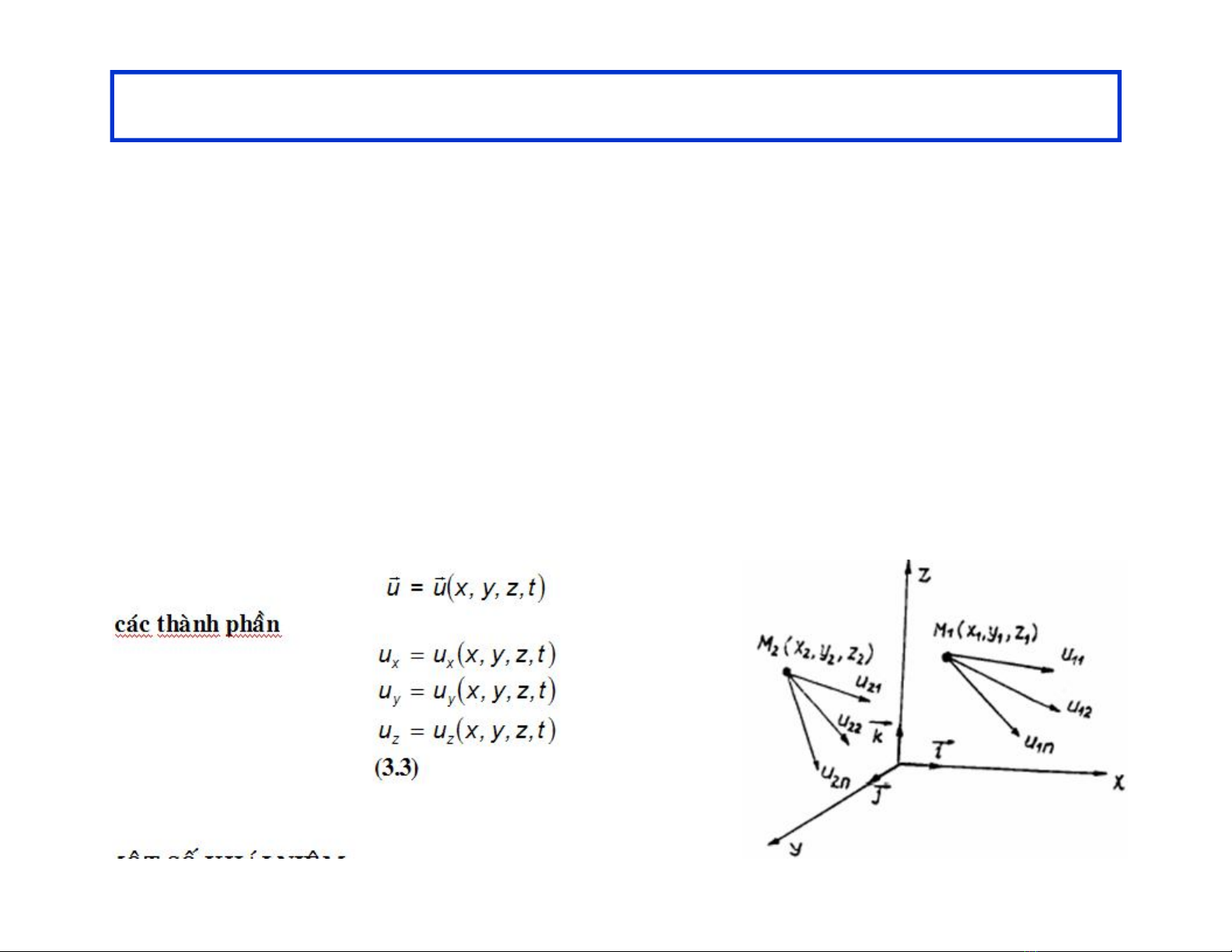 • Tại một điểm M(x,y,z) cố định, ở thời điểm t một phần tử
