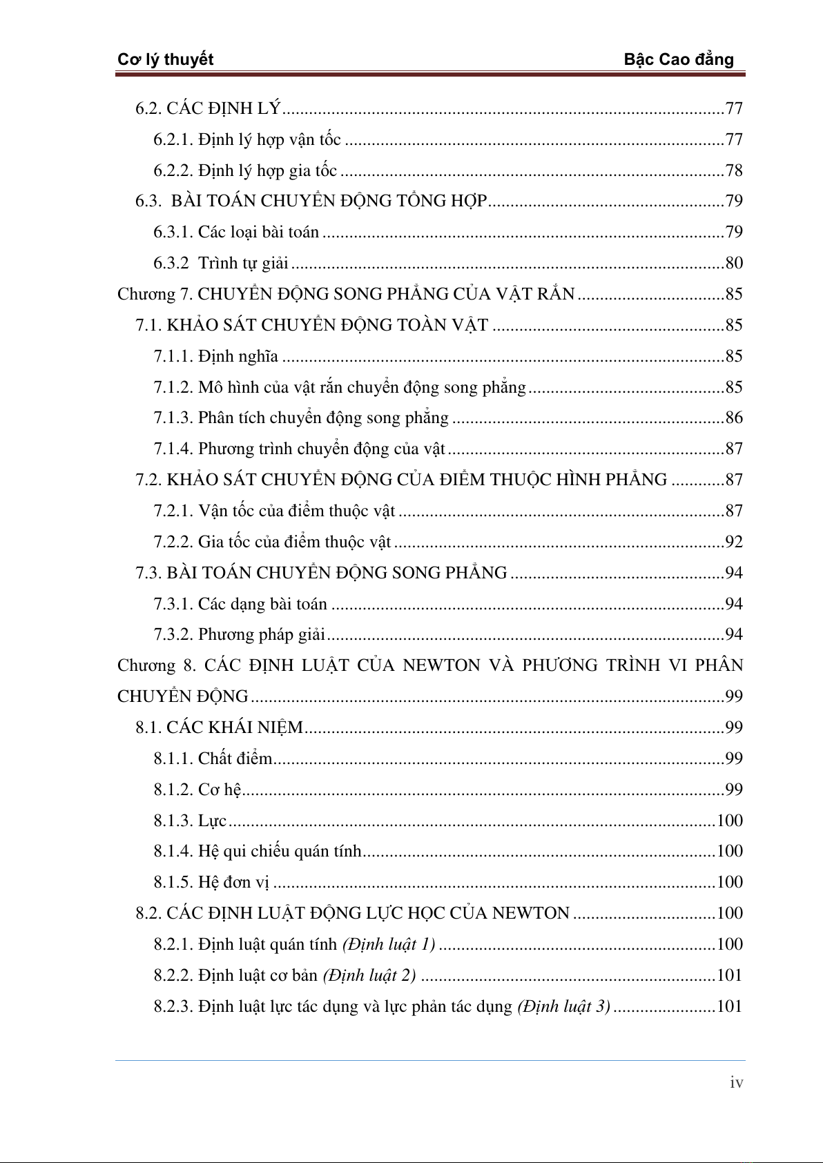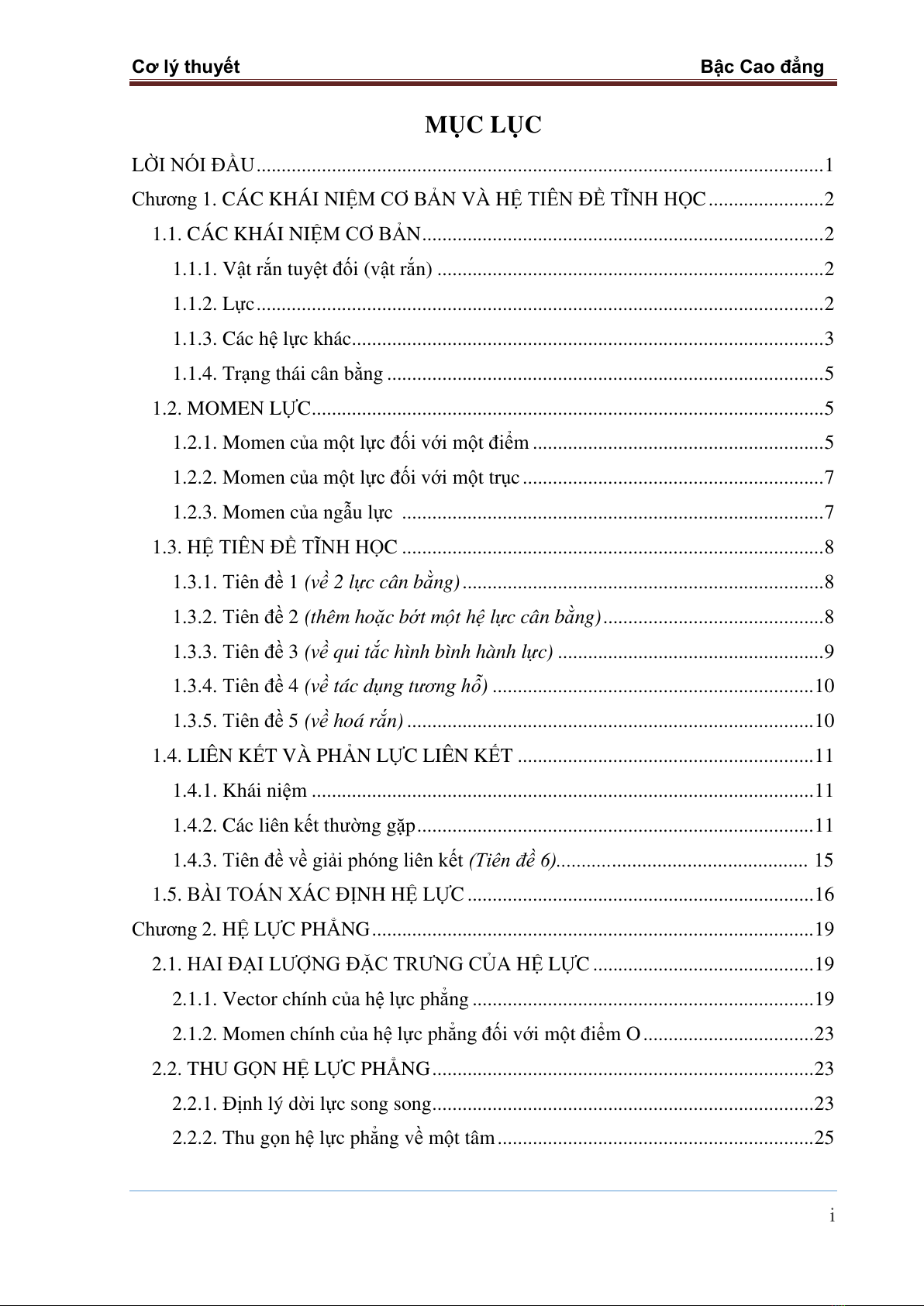 Cơ lý thuyết Bậc Cao đẳng