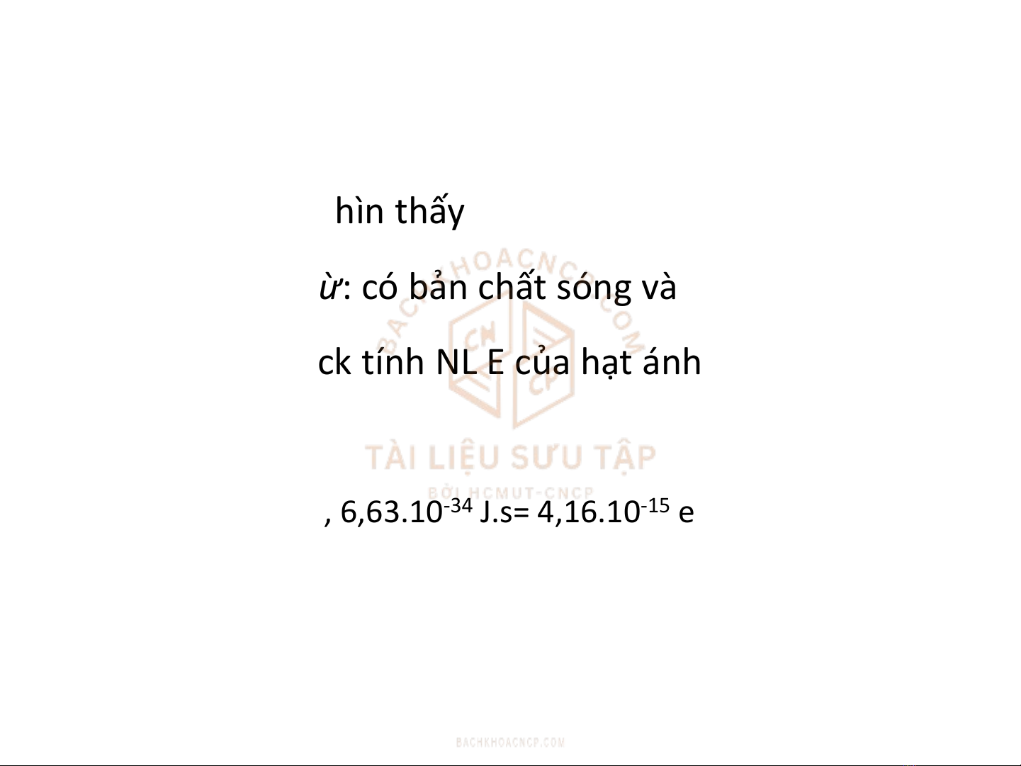 h – hằng số Planck, 6,63.10-34 J.s= 4,16.10-15 eV.s