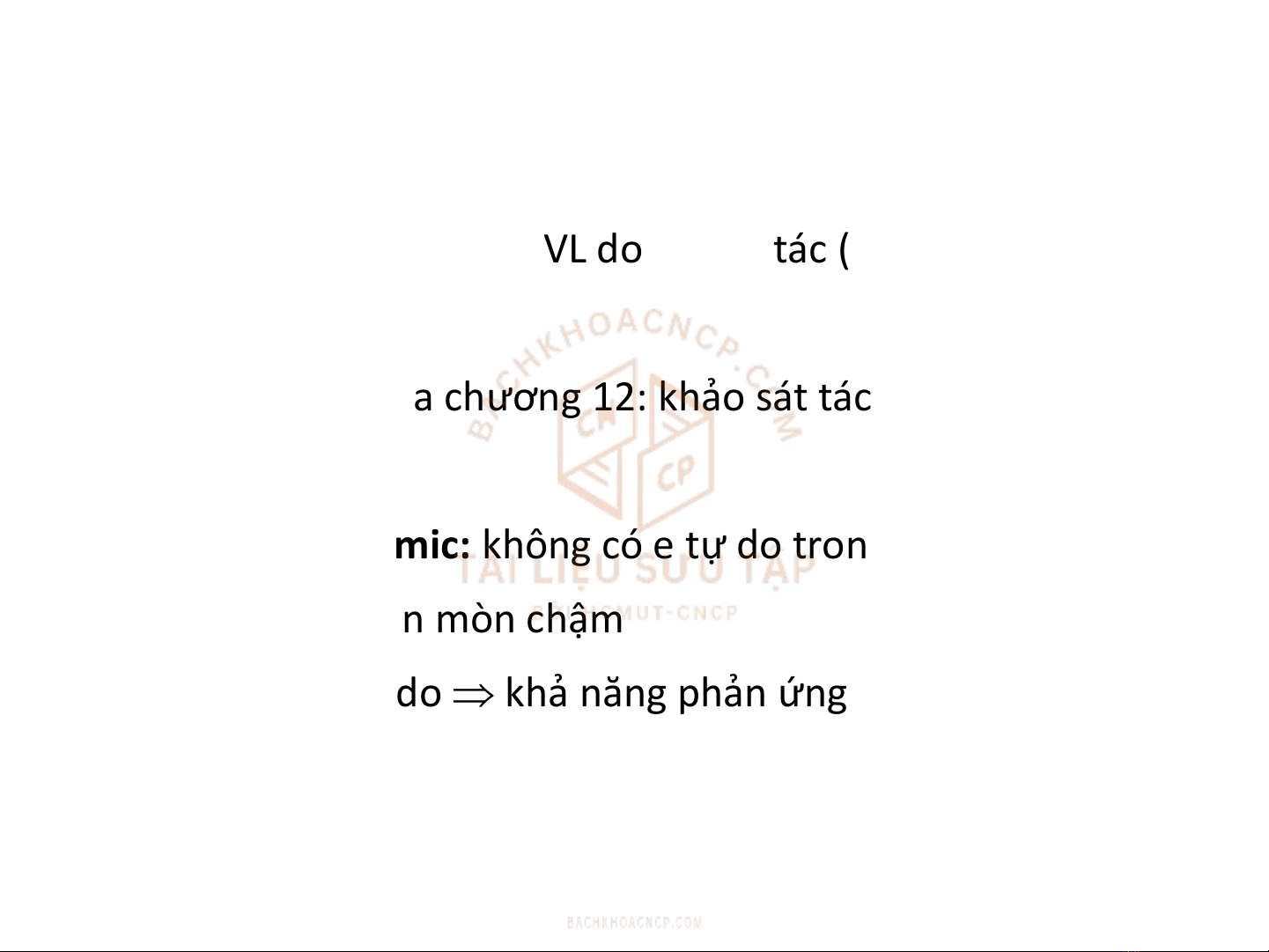 VLKL: nhiều e tự do khả năng phản ứng với MT rất cao, dễ