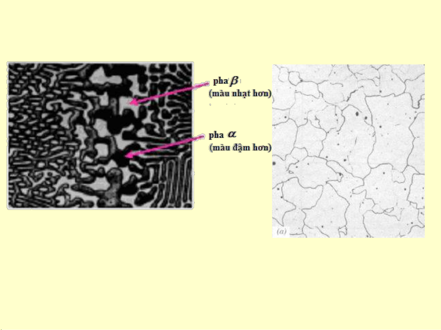 Ví dụ với hợp kim hai pha, một pha có màu nhạt và pha kia sẽ có màu đậm hơn.