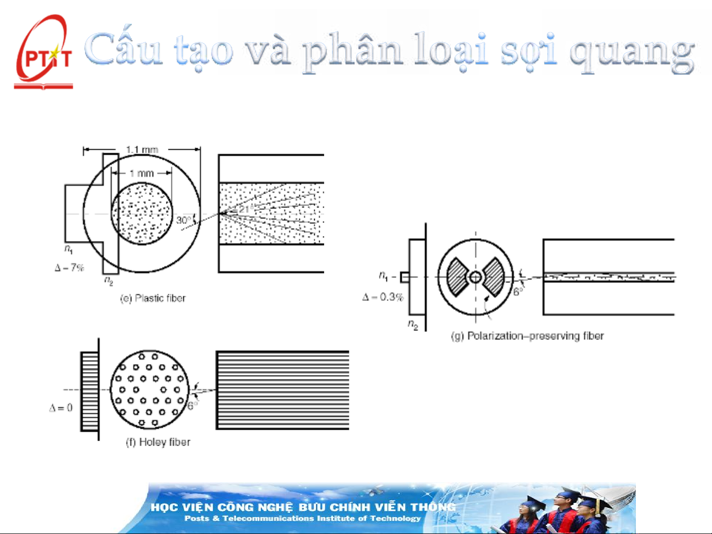 •Phân bố mặt cắt chiết suất: chiết suất bậc (SI), chiết suất biến đổi (GI)