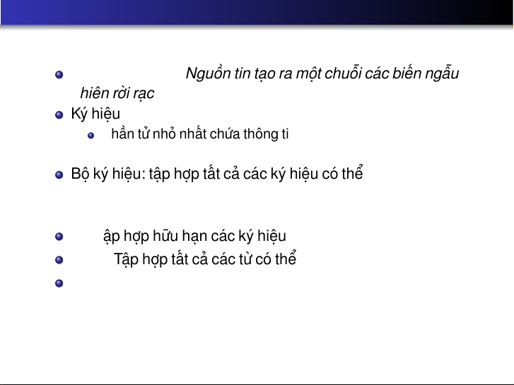 Chương 3: Thông tin và định lượng thông tin 1. Lượng tin của nguồn tin rời rạc 4/ 55