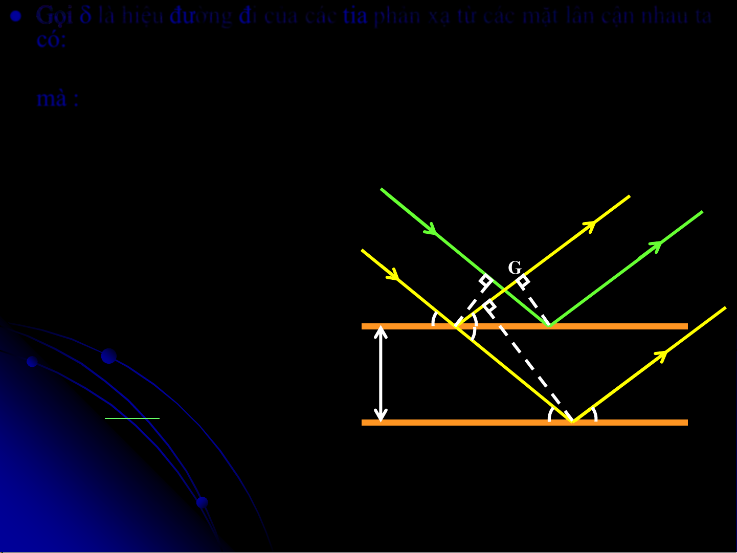 Gọi là hiệu đường đi của các tia phản xạ từ các mặt lân cận nhau ta