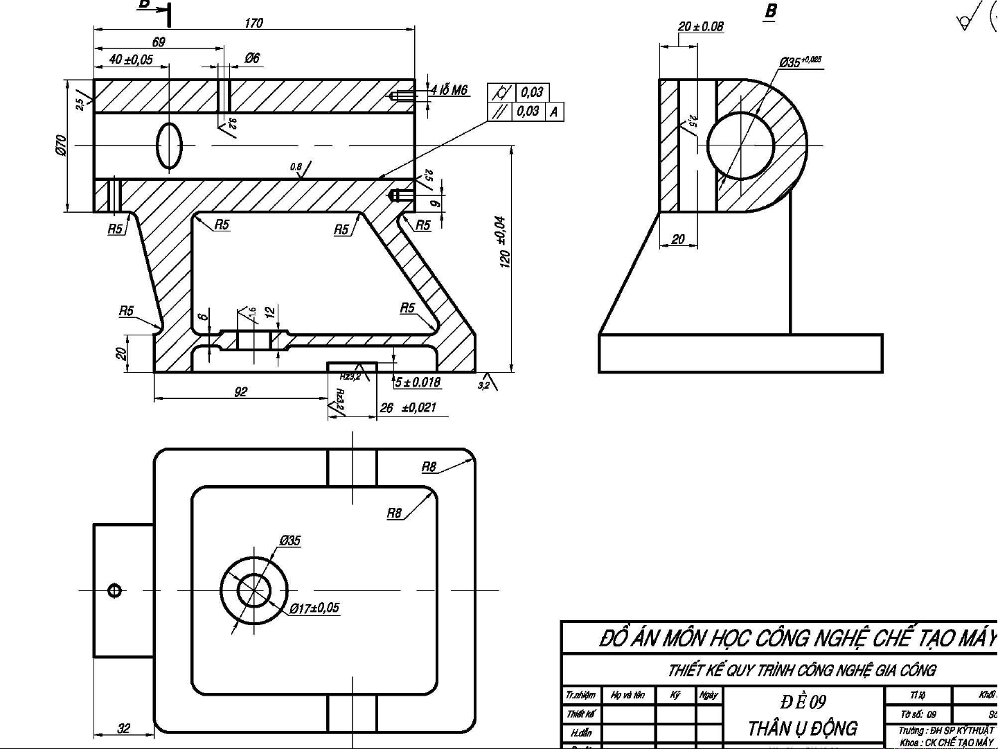 Bài giảng này trình bày một cách có hệ thống về công nghệ gia công các chi tiết điển hình trong chế tạo máy, một lĩnh vực then chốt để nâng cao hiệu quả và chất lượng sản phẩm. Khái niệm chi tiết điển hình được định nghĩa là những chi tiết có hình dáng và kết cấu công nghệ tương tự, cho phép áp dụng quy trình công nghệ điển hình chung. Việc áp dụng các quy trình này mang lại nhiều lợi ích thiết thực, bao gồm tiết kiệm đáng kể thời gian chuẩn bị công nghệ, giảm thiểu tài liệu trùng lặp, đẩy mạnh chuyên môn hóa sản xuất và nâng cao tính loạt của sản phẩm. Tài liệu đi sâu phân tích quy trình công nghệ gia công cho năm loại chi tiết điển hình cơ bản: chi tiết dạng hộp, dạng càng, dạng trục, dạng bạc và bánh răng. Trong đó, chi tiết dạng hộp được làm nổi bật với phân tích chi tiết về các yêu cầu kỹ thuật chủ yếu như độ không phẳng, độ nhám bề mặt, dung sai kích thước và độ chính xác của lỗ. Các khía cạnh về tính công nghệ trong kết cấu của chi tiết dạng hộp cũng được trình bày, nhấn mạnh sự cần thiết của độ cứng vững, bề mặt chuẩn và cấu trúc lỗ đơn giản. Về vật liệu và phôi, bài giảng đề cập đến gang xám, thép đúc, hợp kim nhôm và thép tấm hàn, cùng với các phương pháp tạo phôi như đúc trong khuôn cát, đúc vỏ mỏng và đúc áp lực. Cuối cùng, quy trình công nghệ gia công chi tiết dạng hộp được phác thảo, bao gồm chuẩn định vị, trình tự gia công các bề mặt chính và các biện pháp kiểm tra hộp, cung cấp cái nhìn tổng quan và toàn diện về phương pháp chế tạo hiệu quả.