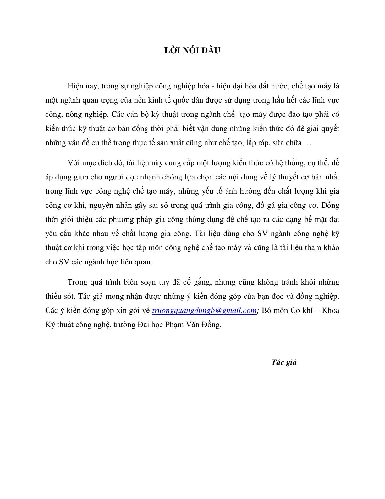 Các ý kiến đóng góp xin gởi về truongquangdungb@gmail.com; Bộ môn Cơ khí – Khoa
