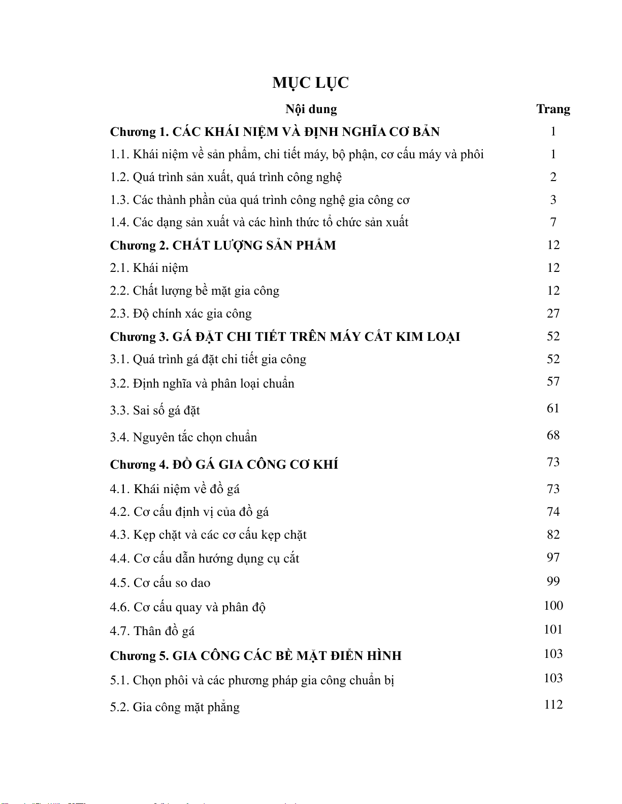 yêu cầu khác nhau về chất lượng gia công. Tài liệu dùng cho SV ngành công nghệ kỹ