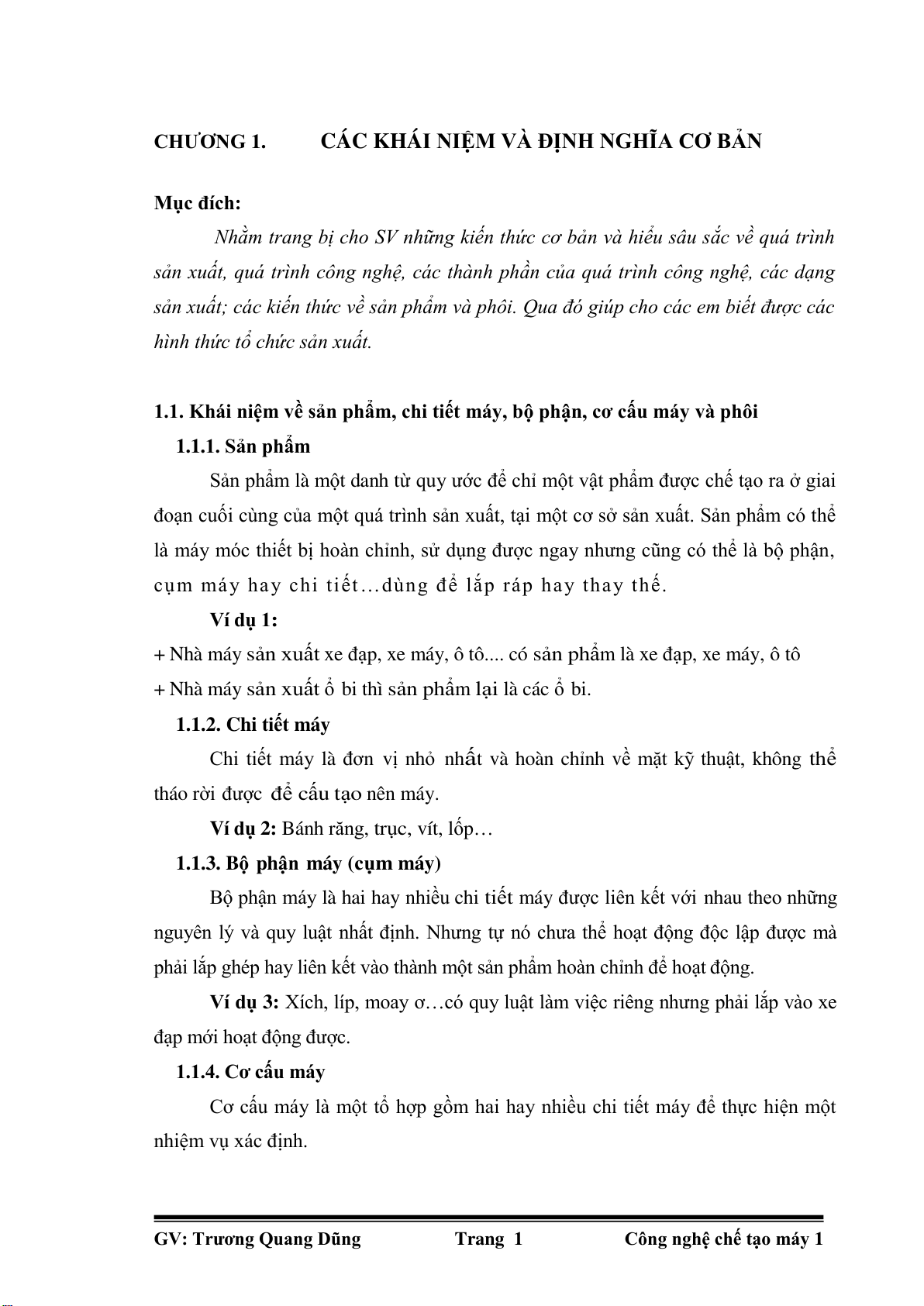 GV: Trng Quang Dũng Trang 1 Công ngh chế to máy 1