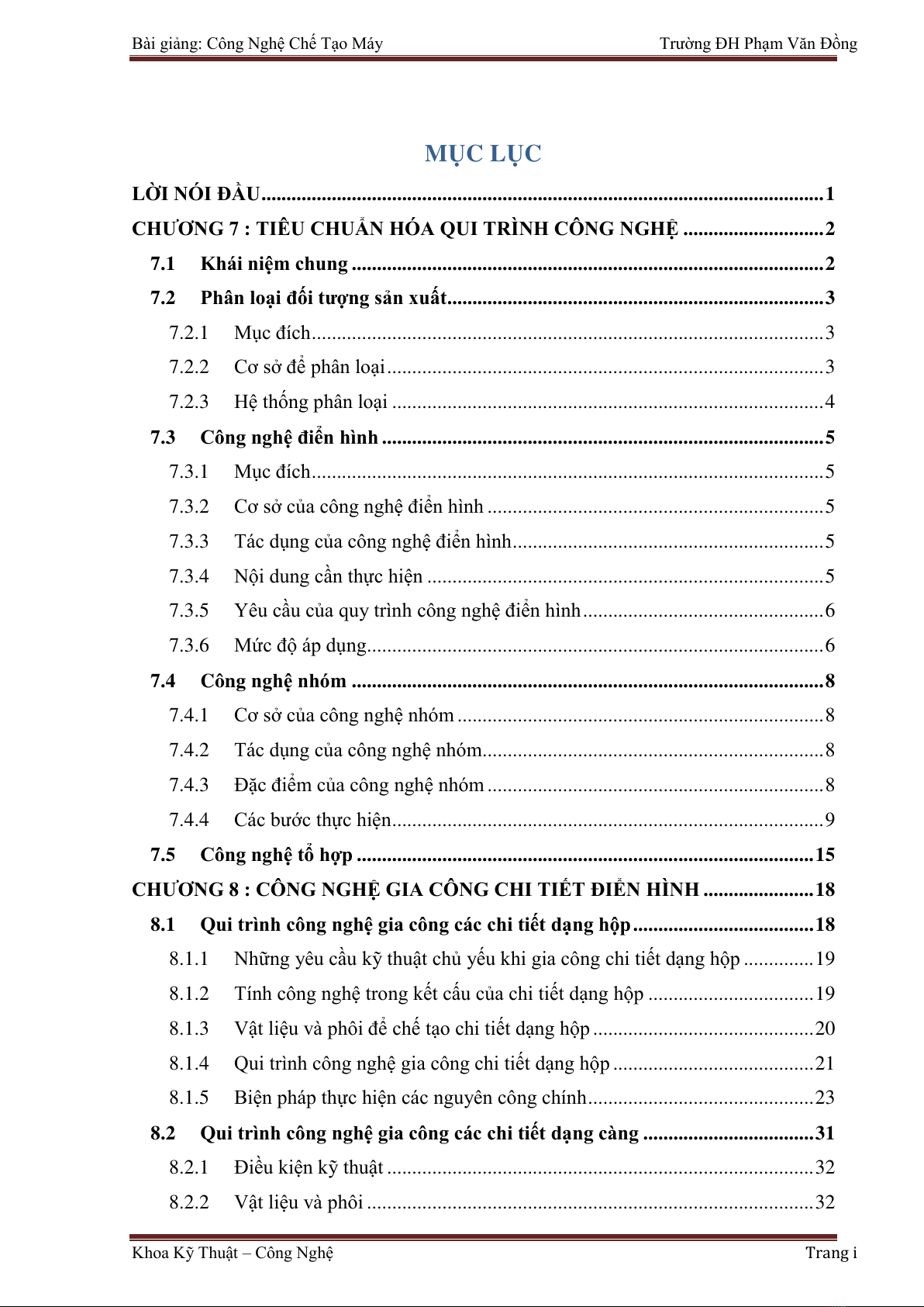 8.2 Qui trình công ngh gia công các chi tit dng cƠng .................................. 31