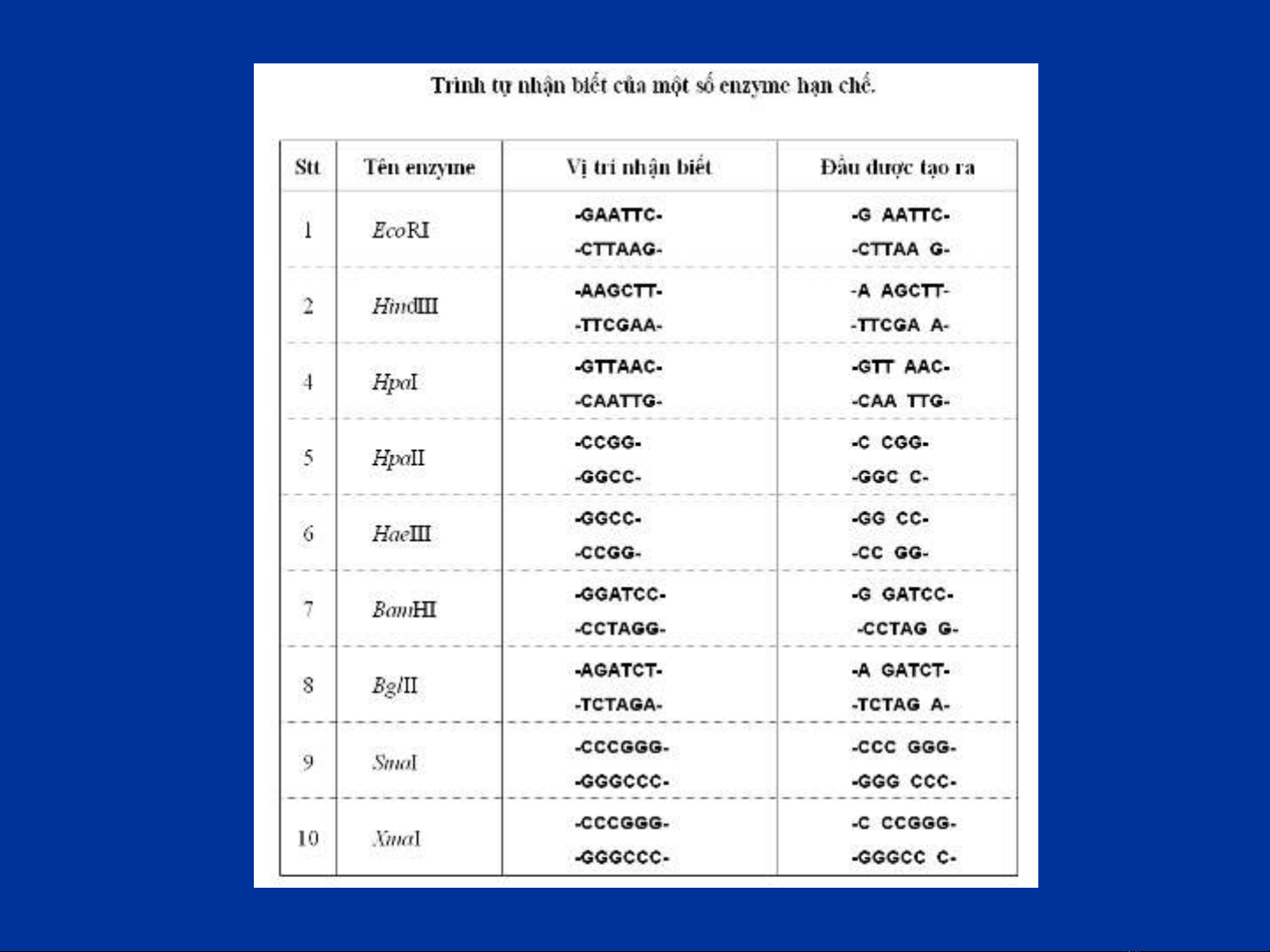 1. Gă7n ca7c đâ?u tâ@n cu?ng được enzyme hạn chế cắt