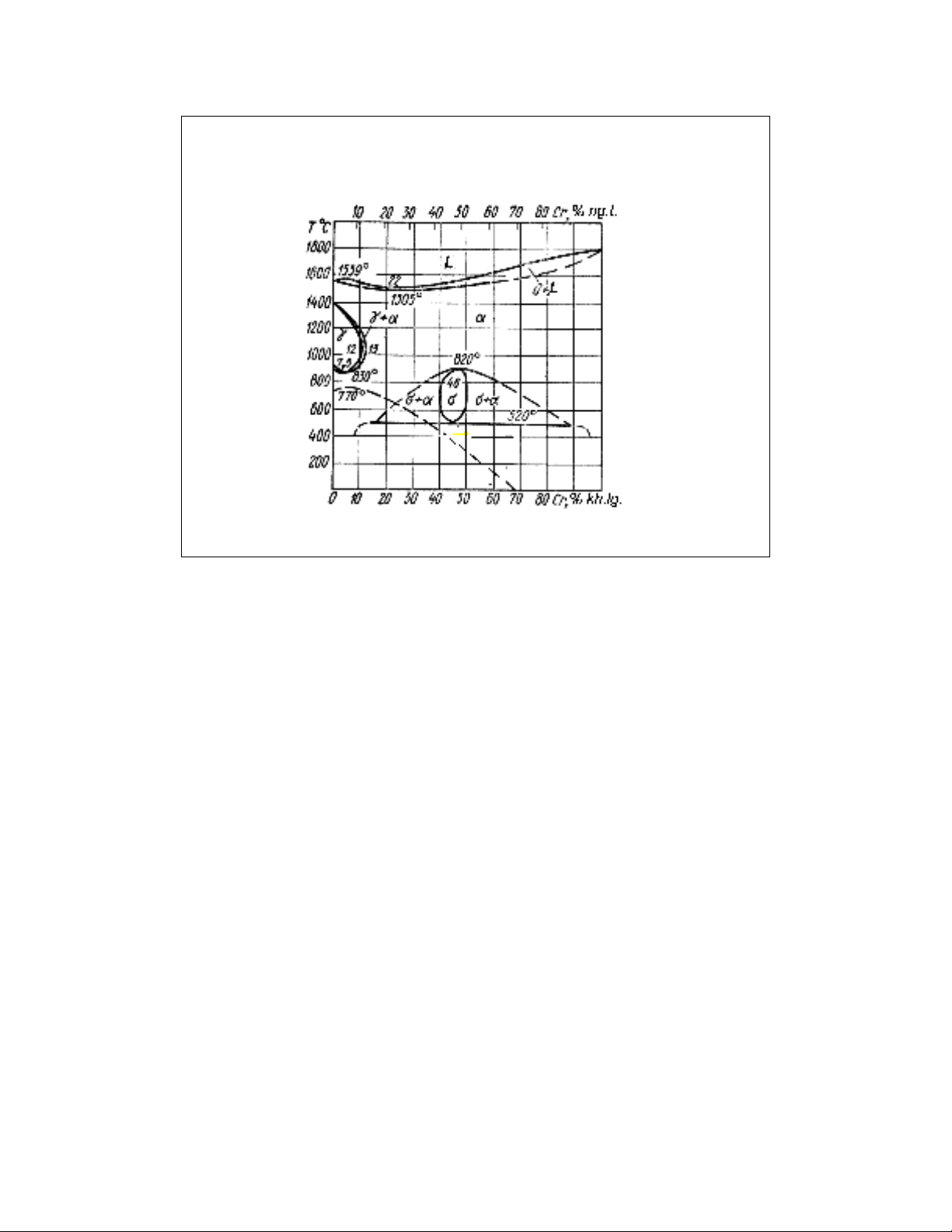 •Cr: lp phương th tâm, đồng hình vi α–ferit. Do đó, khi hp kim hóa Fe bng Cr,