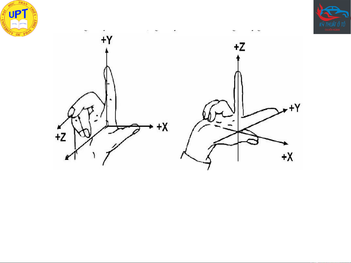 Ngón tay cái là trục X, ngón tay trỏ là trục Y và