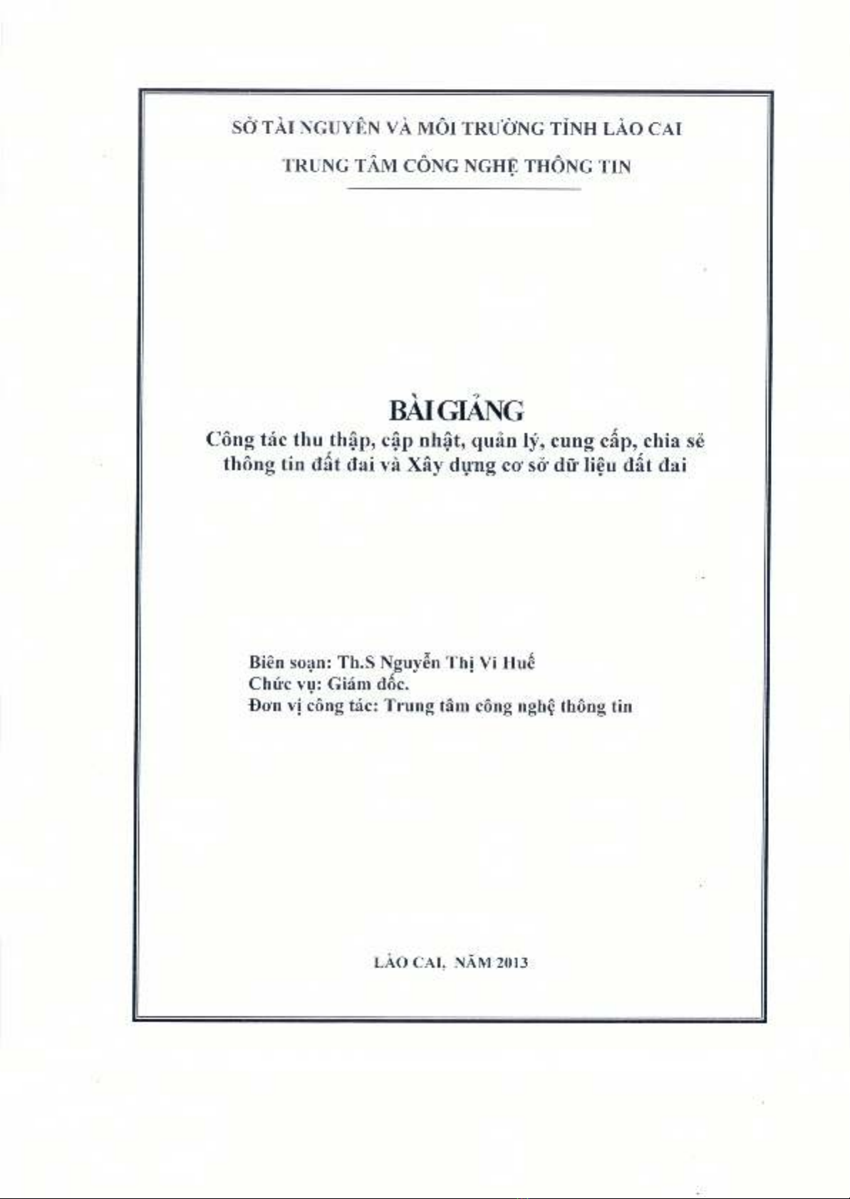 Bài giảng Công tác thu thập, cập nhật, quản lý, cung cấp chia sẻ thông tin đất đai và xây dựng cơ sở dữ liệu đất đai