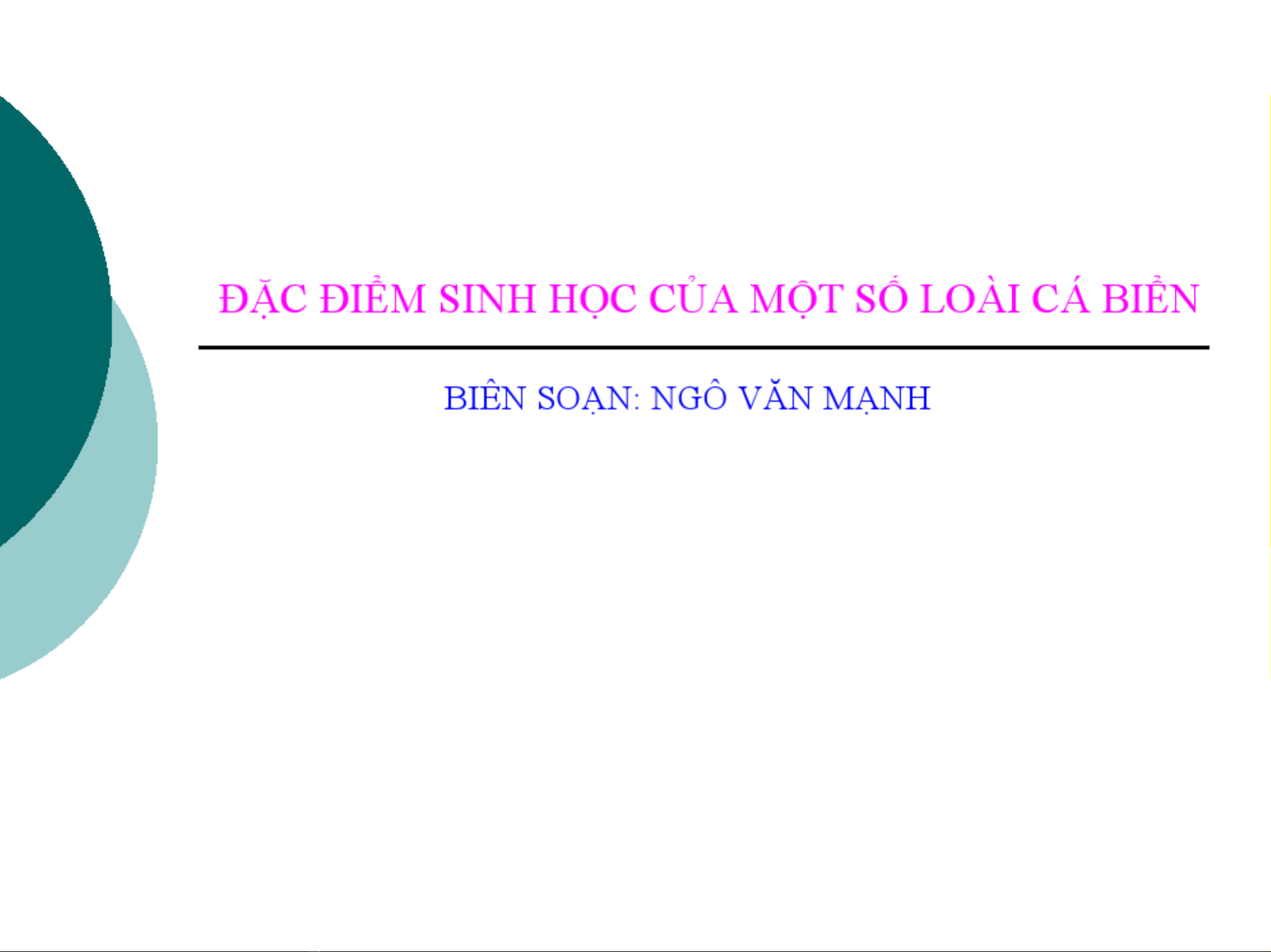 Bài giảng Đặc điểm sinh học của một số loài cá biển: Phần 1 - Ngô Văn Mạnh