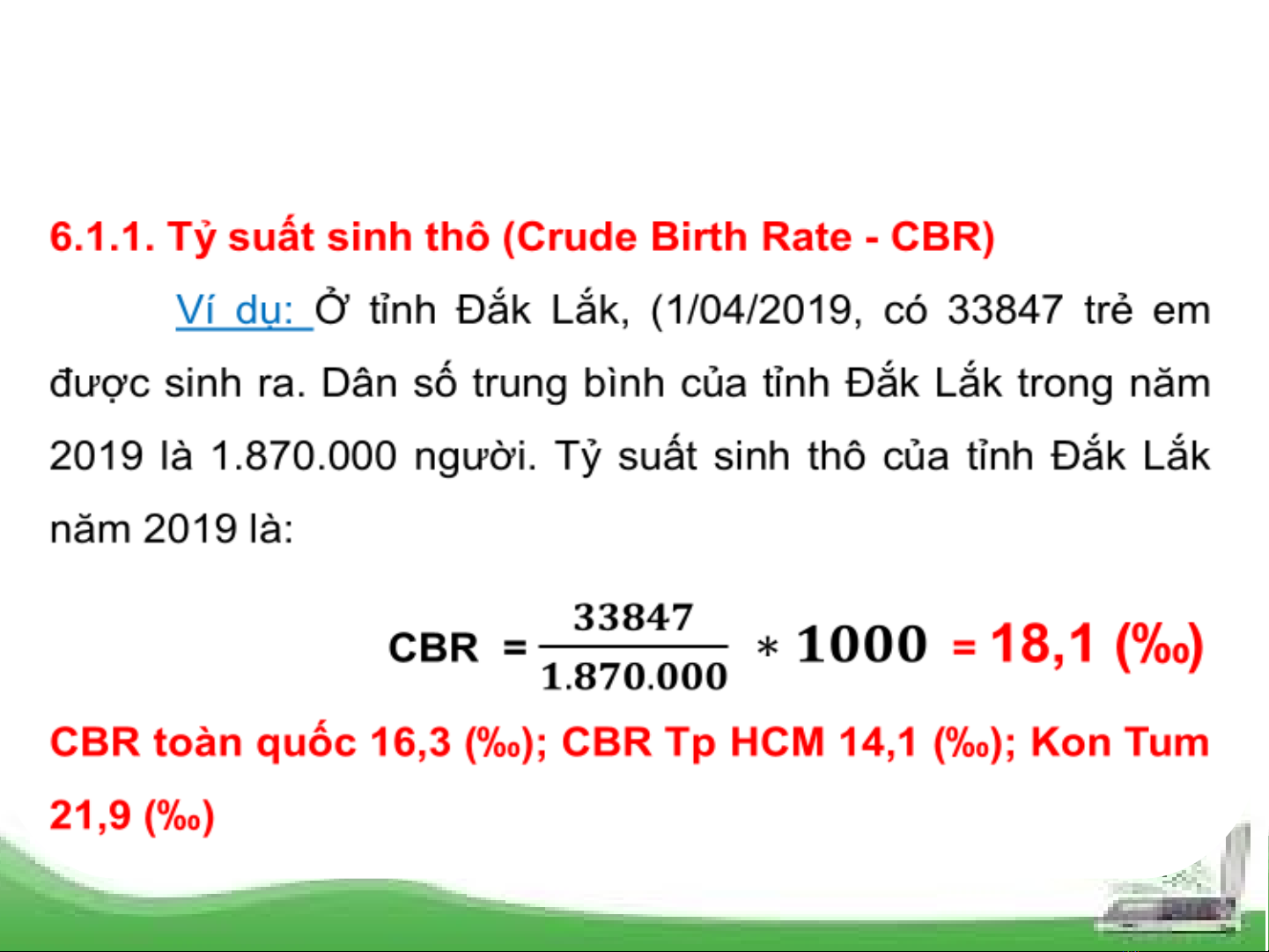 6.1.1. Tỷ suất sinh thô (Crude Birth Rate - CBR) Nó biểu thị số