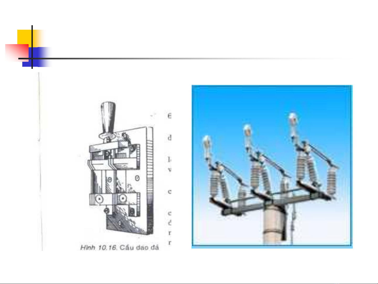 Cầu dao là loại KCĐ đóng, cắt mạch điện bằng tay ở
