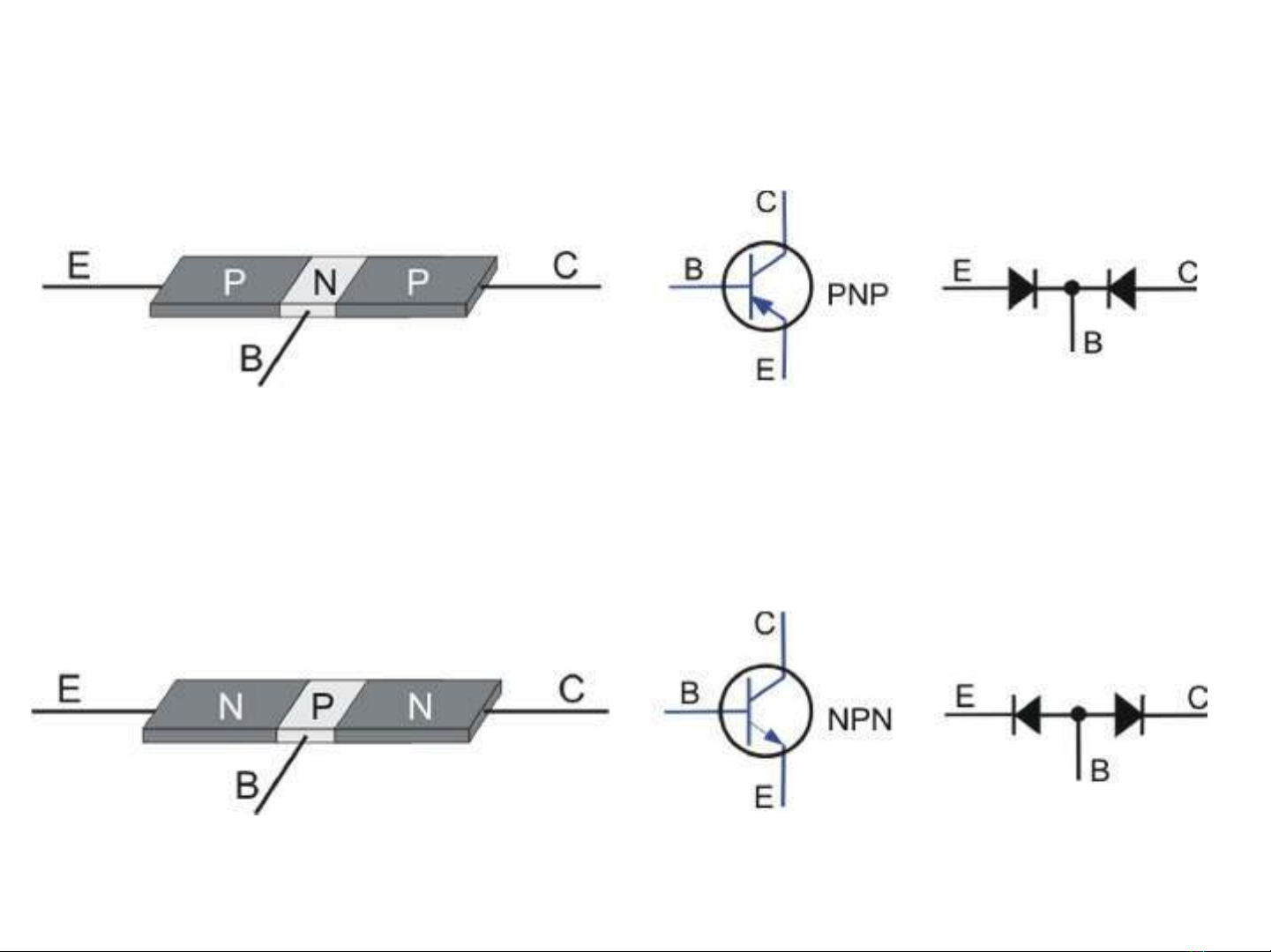Transistor gồm hai mối nối PN để hình thành nên 3 vùng