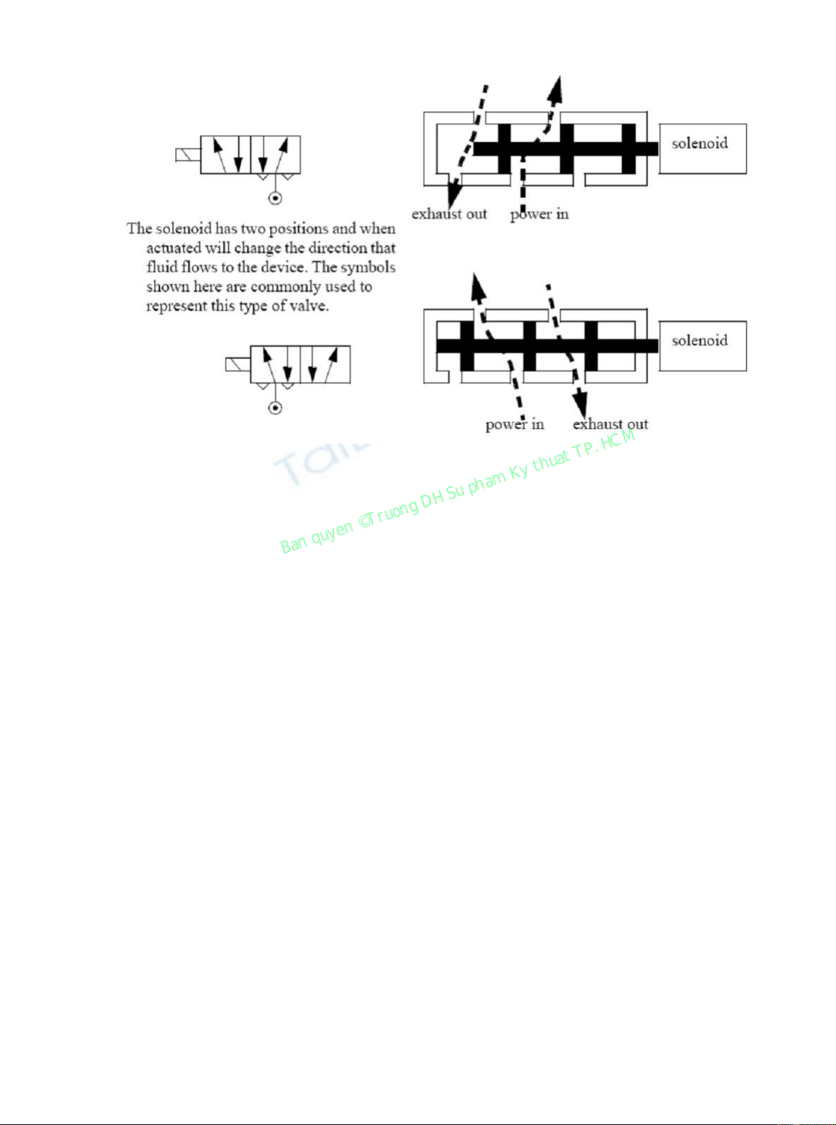Trong hình vẽ dưới, Solenoid ở vị trí mới nên áp suất được cấp đến port trái, còn port