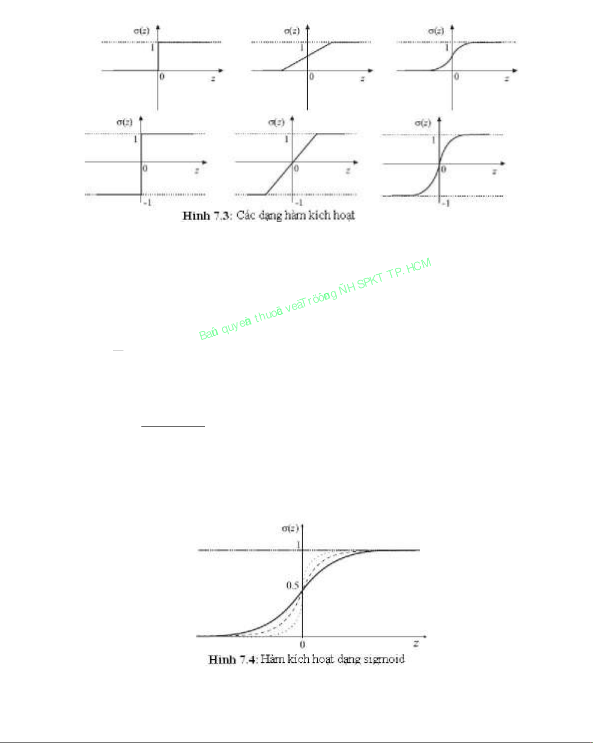 thường có dạng hàm ngưỡng (threshold), hàm sigmoidal và hàm tanh (Hình 7.3).