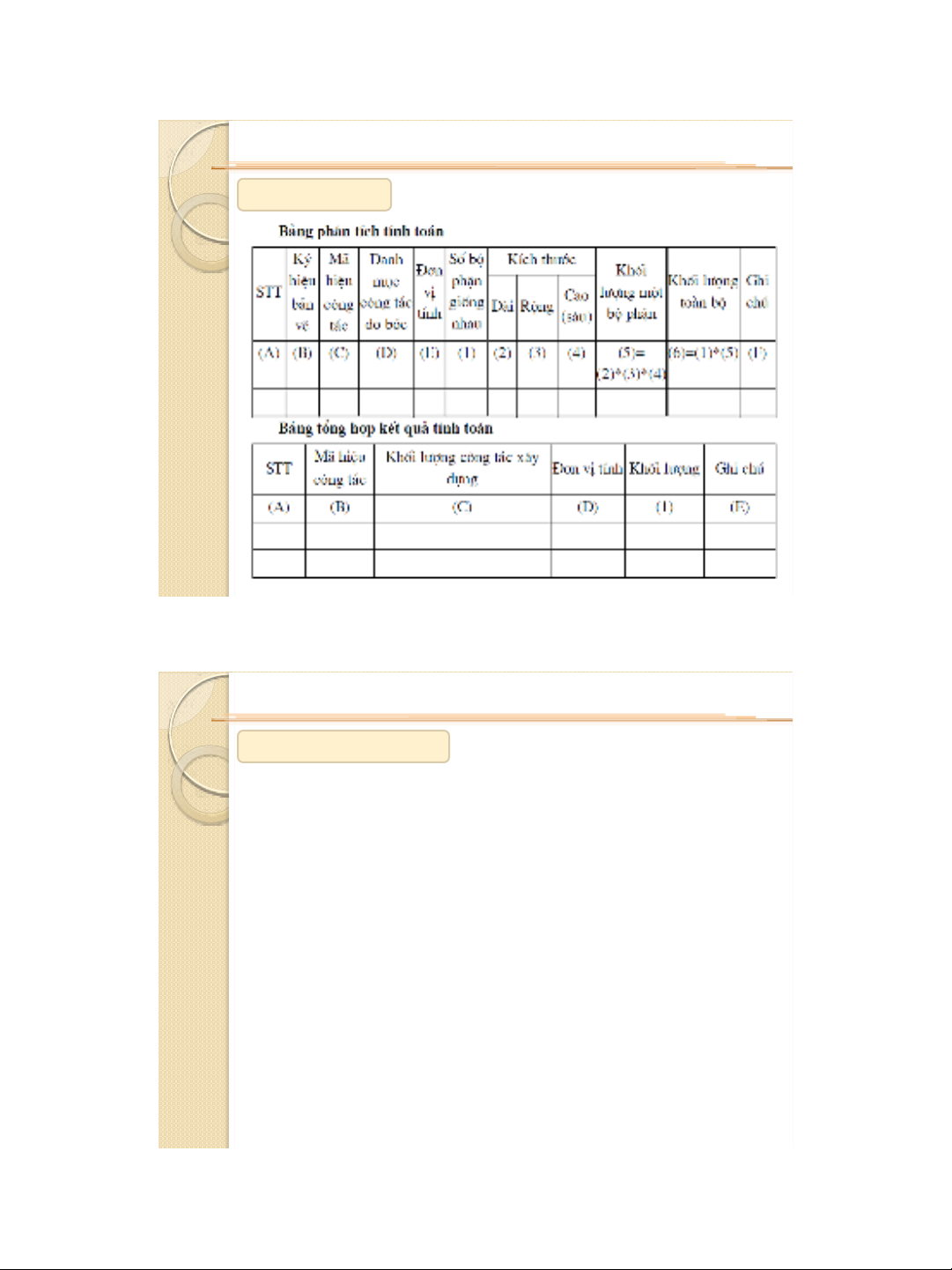- Các ký hiệu dùng trong Bảng đo bóc khối lƣợng phải phù hợp