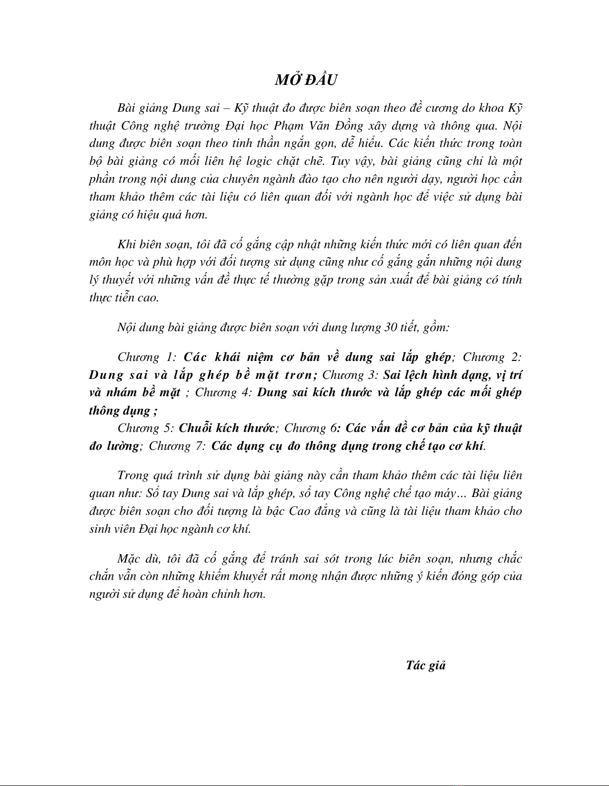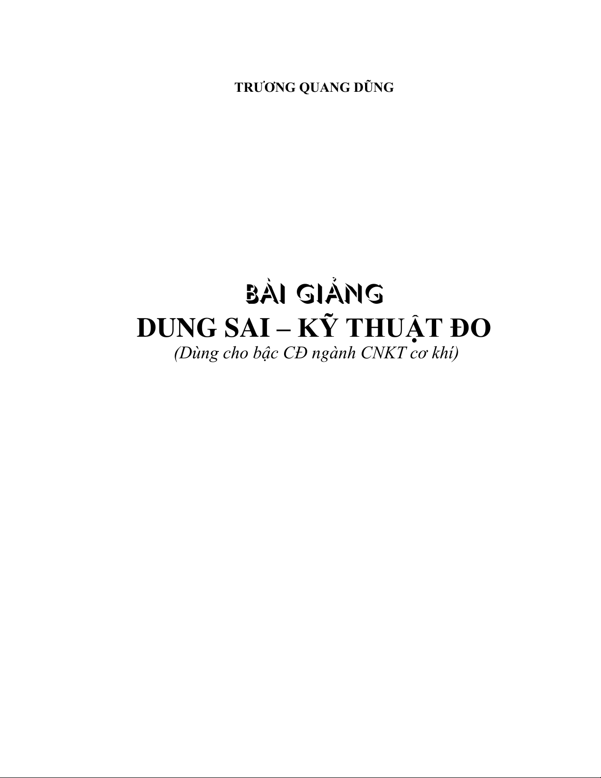 Bài giảng Dung sai – Kỹ thuật đo được biên soạn theo đề cương do khoa Kỹ