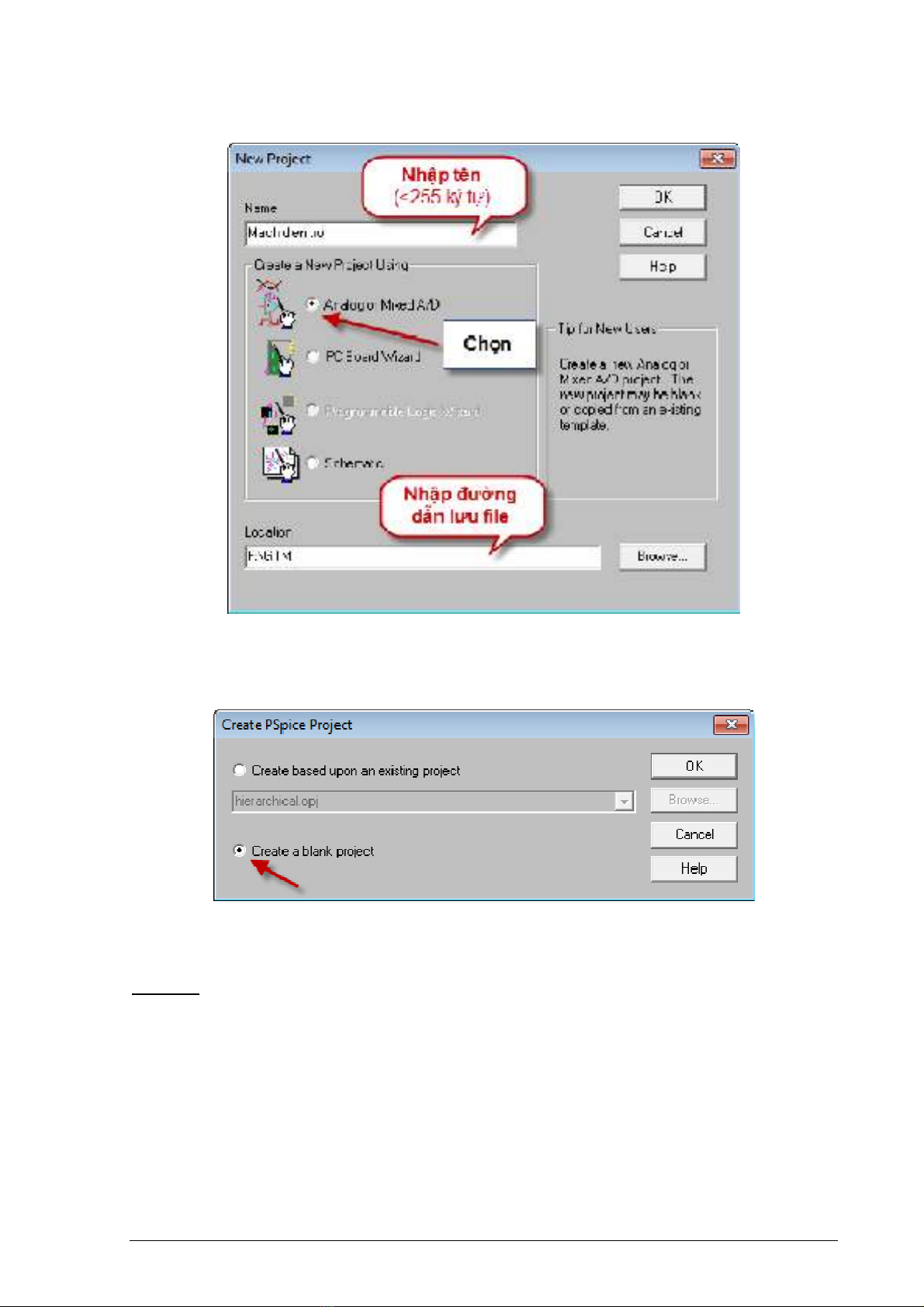 Bước 1: Tạo file sơ đồ nguyên lý có hỗ trợ phân tích (PSPICE).