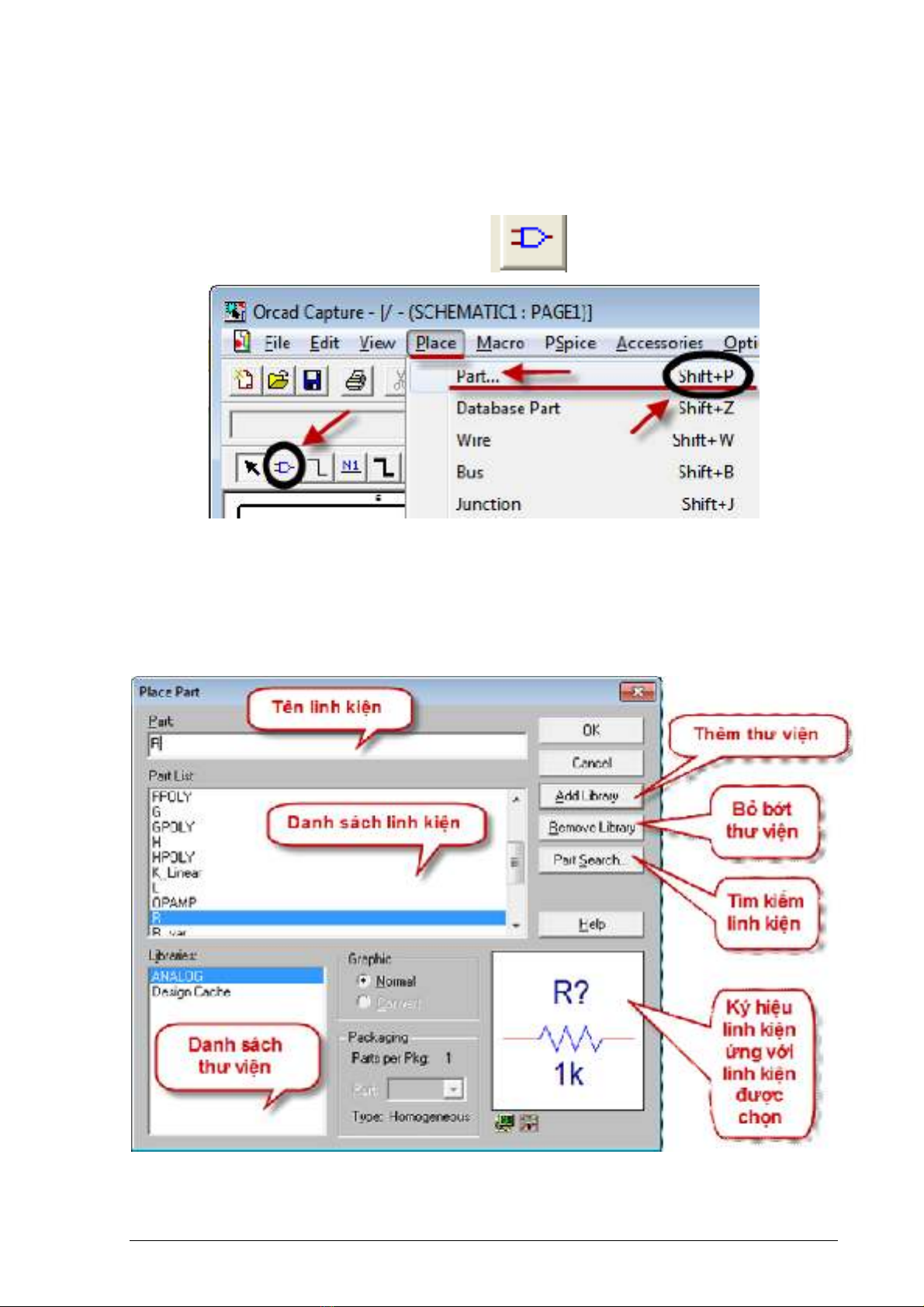 Thêm vào đó PSpice có những thư viện tương tự và số của những linh kiện
