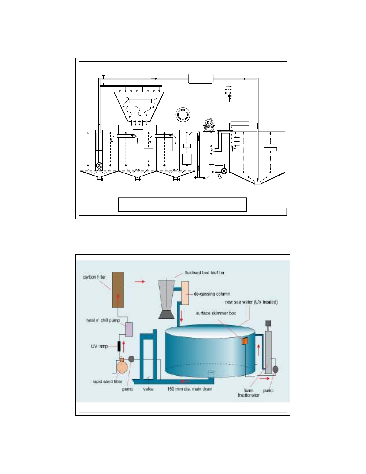 Submerged biofilter (3 compartments) Protein skimmer Rearing tank (4 tanks)
