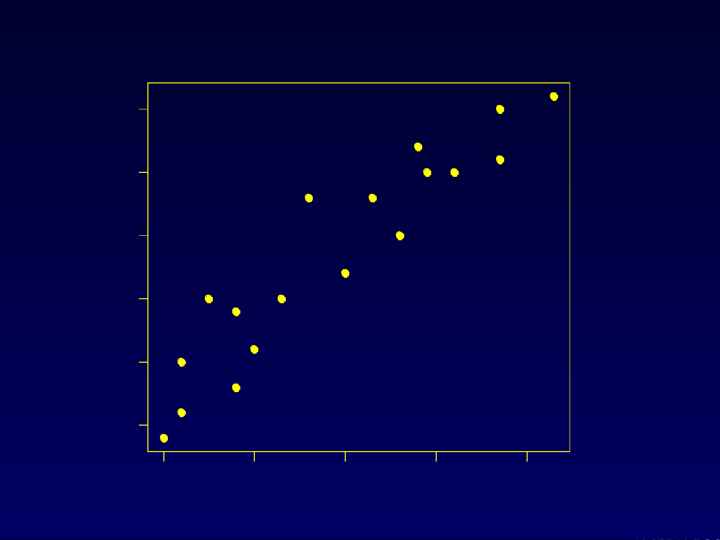 plot(chol ~ age, pch=16) # Ve bieu do tan xa