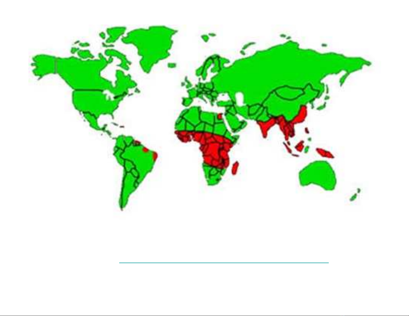 Sơ đồ phân bố địa lý giun chỉ bạch huyết trên thế giới