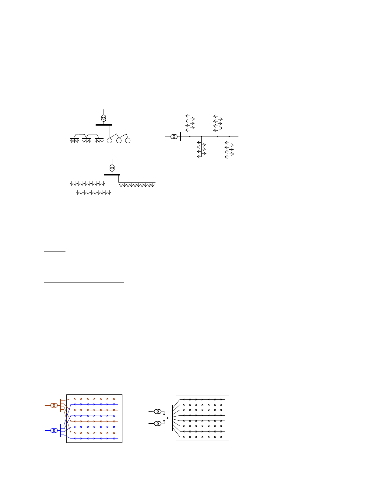 Sơ đồ đường dây chính: khác với sơ đồ hình tia là từ mỗi mạch của SĐ. cung cấp cho một số thiết bị nằm trên đường đi của nó