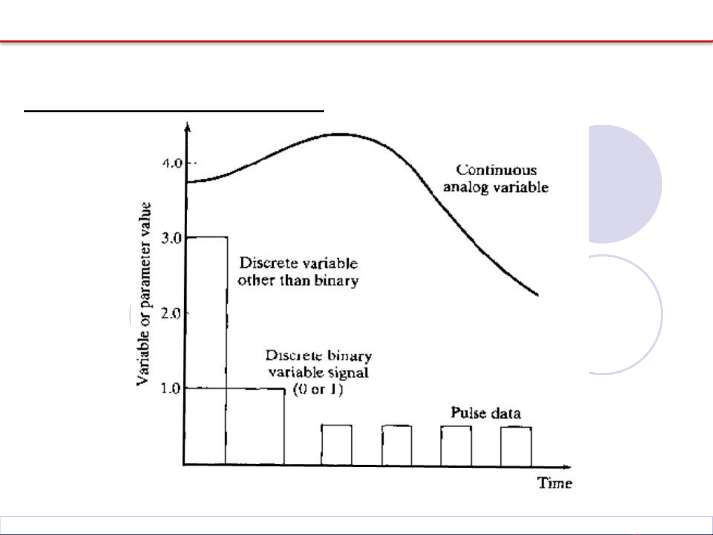 Thường là tín hiệu tương tự (analog) nằm trong khoảng xác định.