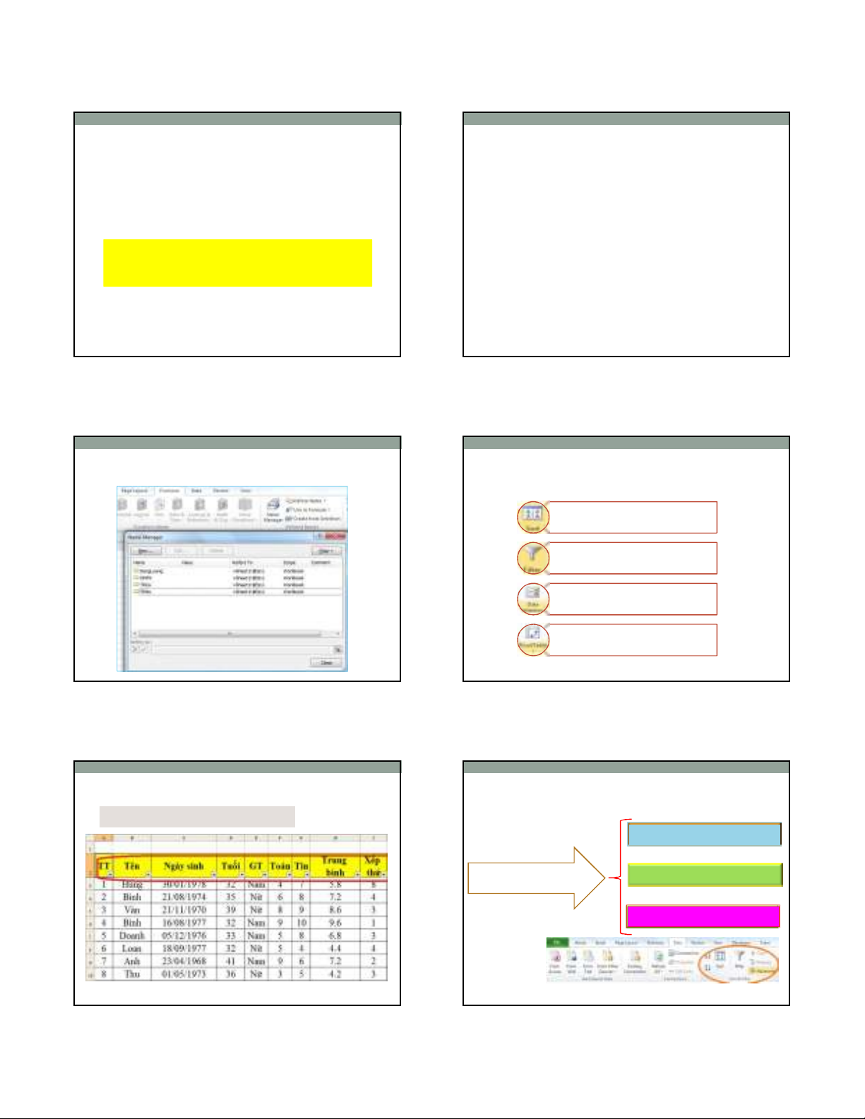 Đặt tên khối 2. Xử lý dữ liệu trong Excel