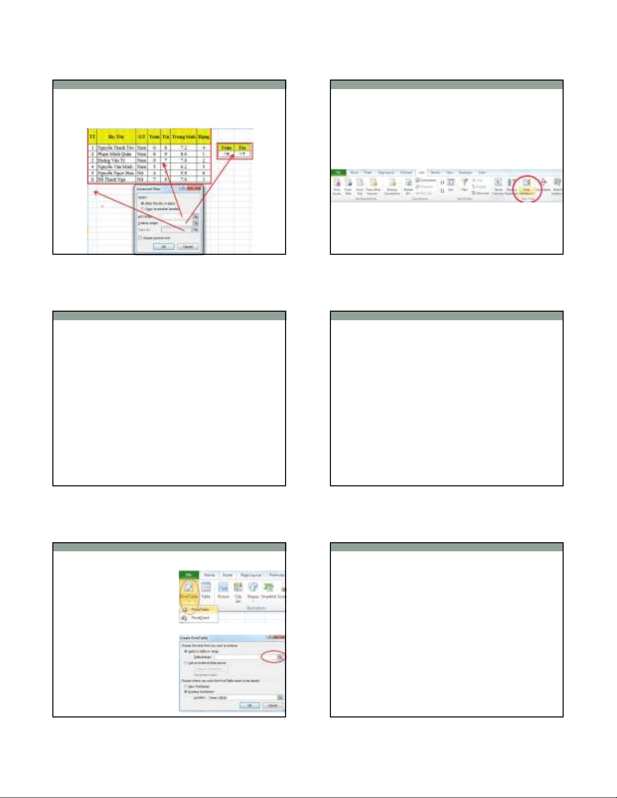 •Bao gồm cả Subtotal, Consolidate và Data