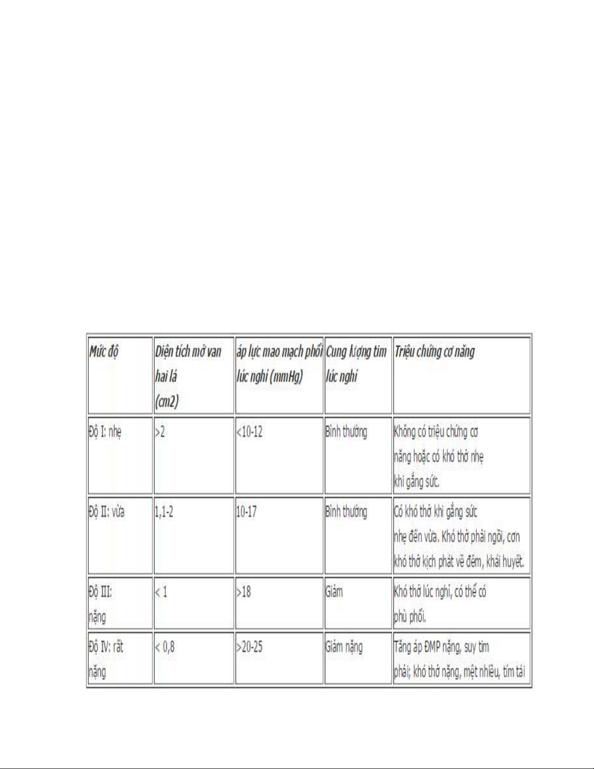 Bảng phân loại mức độ hẹp lỗvan hai lá theo sinh lý bệnh