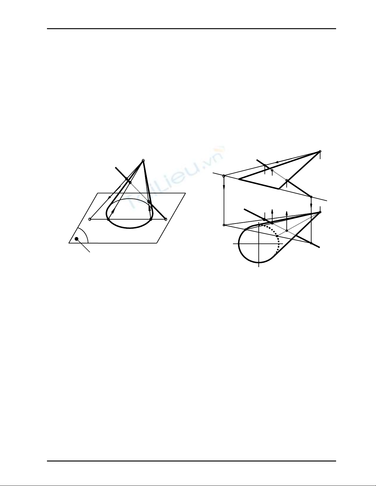 Vì d ⊥ P2 ⇒ M2 ≡ N2 ≡ d2 . Gắn M, N vào các đường sinh SI, SJ của nón ⇒ M1, N1; (Hình 11.3)