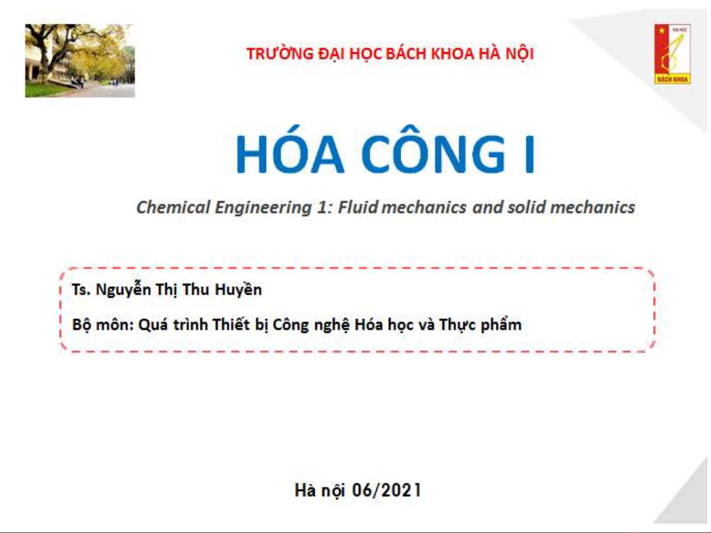 Bài giảng Hóa công 1: Chương 6 - TS. Nguyễn Thị Thu Huyền