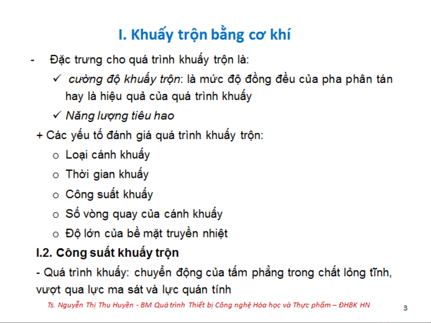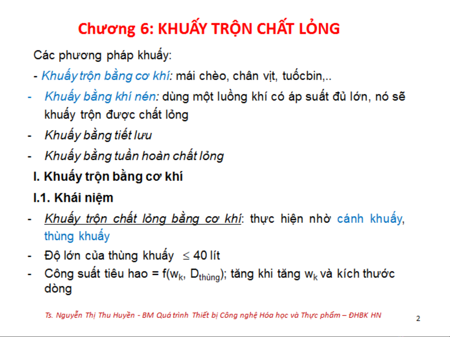 Bài giảng "Hóa công 1: Chương 6 - Khuấy trộn chất lỏng" được biên soạn với các nội dung tìm hiểu về các phương pháp khuấy bao gồm: Khuấy trộn bằng cơ khí; Khuấy trộn bằng khí nén; Khuấy trộn bằng tiết lưu; Khuấy trộn bằng tuần hoàn chất lỏng. Mời các bạn cùng tham khảo chi tiết bài giảng tại đây!