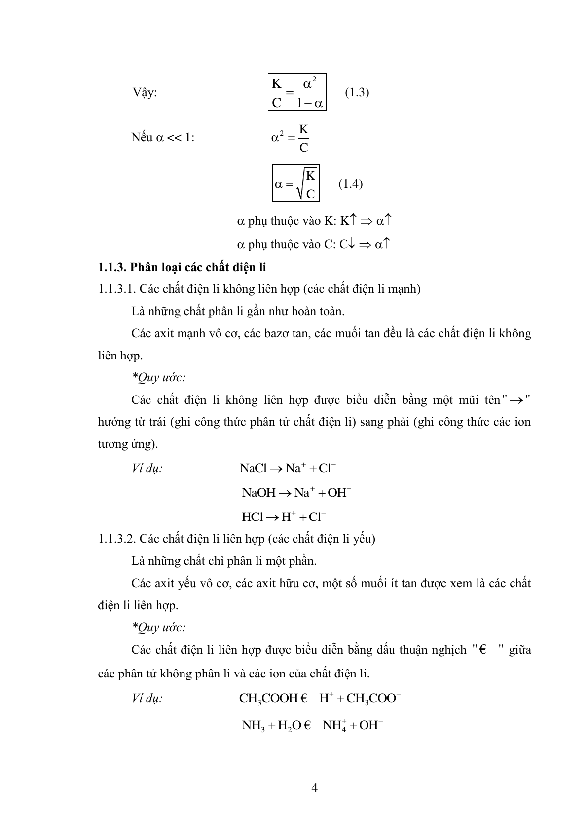 1.1.3.2. Các chất điện li liên hợp (các chất điện li yếu)
