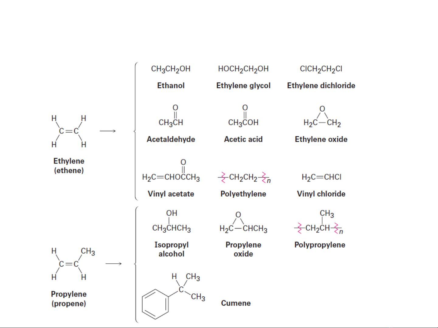 Trong kỹ nghệ, ethylene và propylene được tổng hợp bằng phương pháp