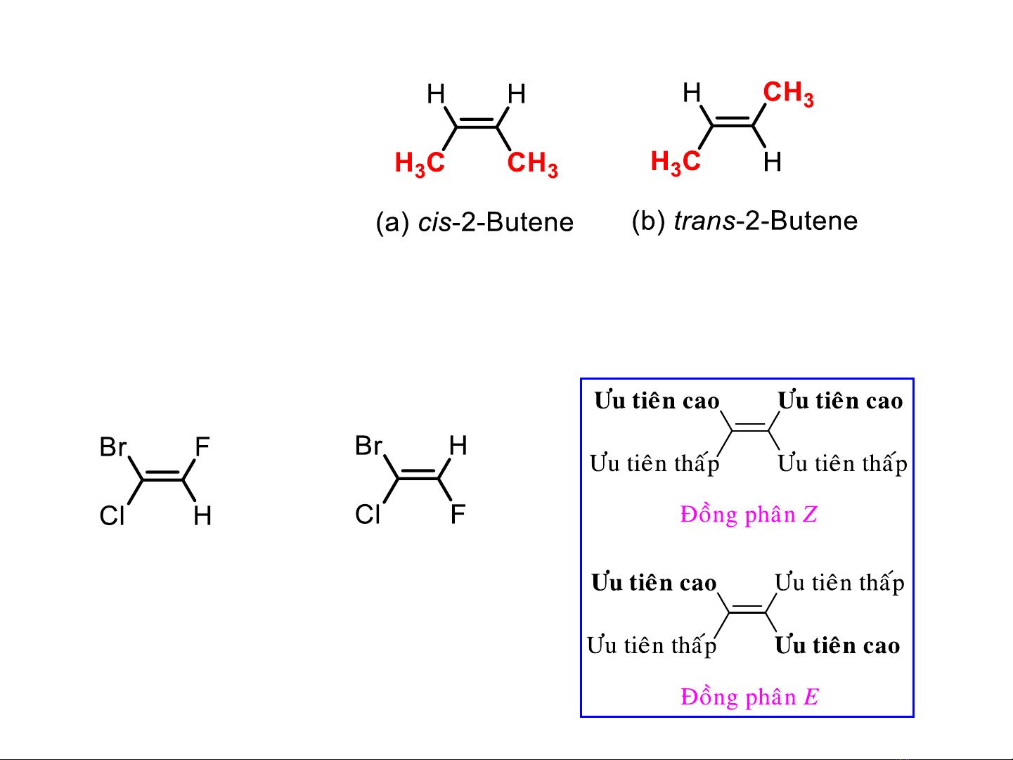 cis: hai phối tử giống nhau cùng nằm một bên mặt phẳng tham chiếu.