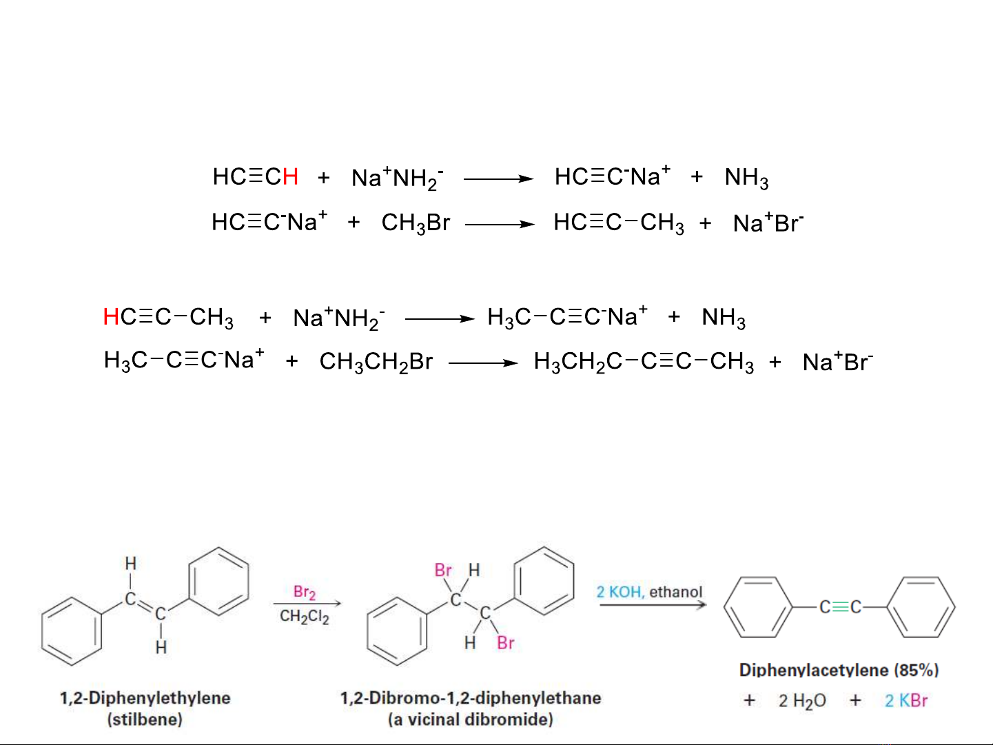 Tiếp tục phản ứng này, nối ba có thể ở vị trí như mong muốn trong mạch carbon
