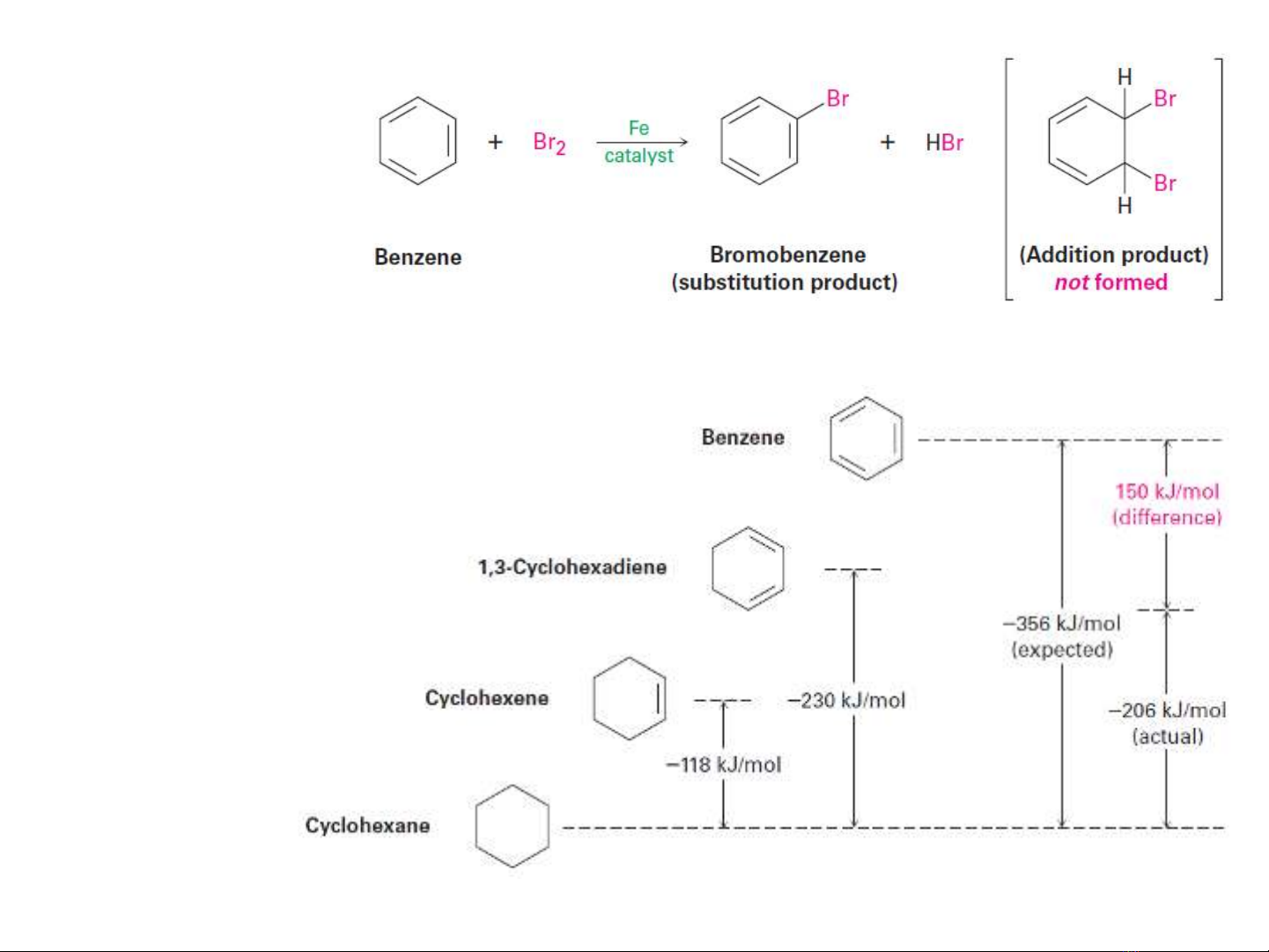 Benzene phản ứng chậm với Br2 cho sản phẩm thế C6H5Br