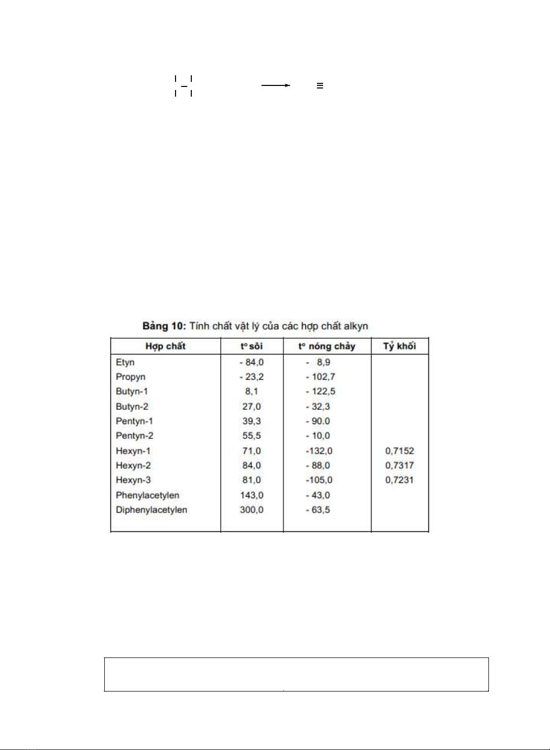 Một vài tính cht vật lý ca alkyn được trình bày bảng 10-1.