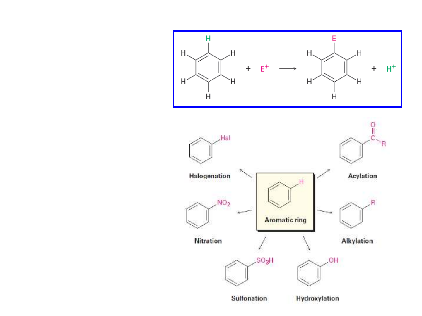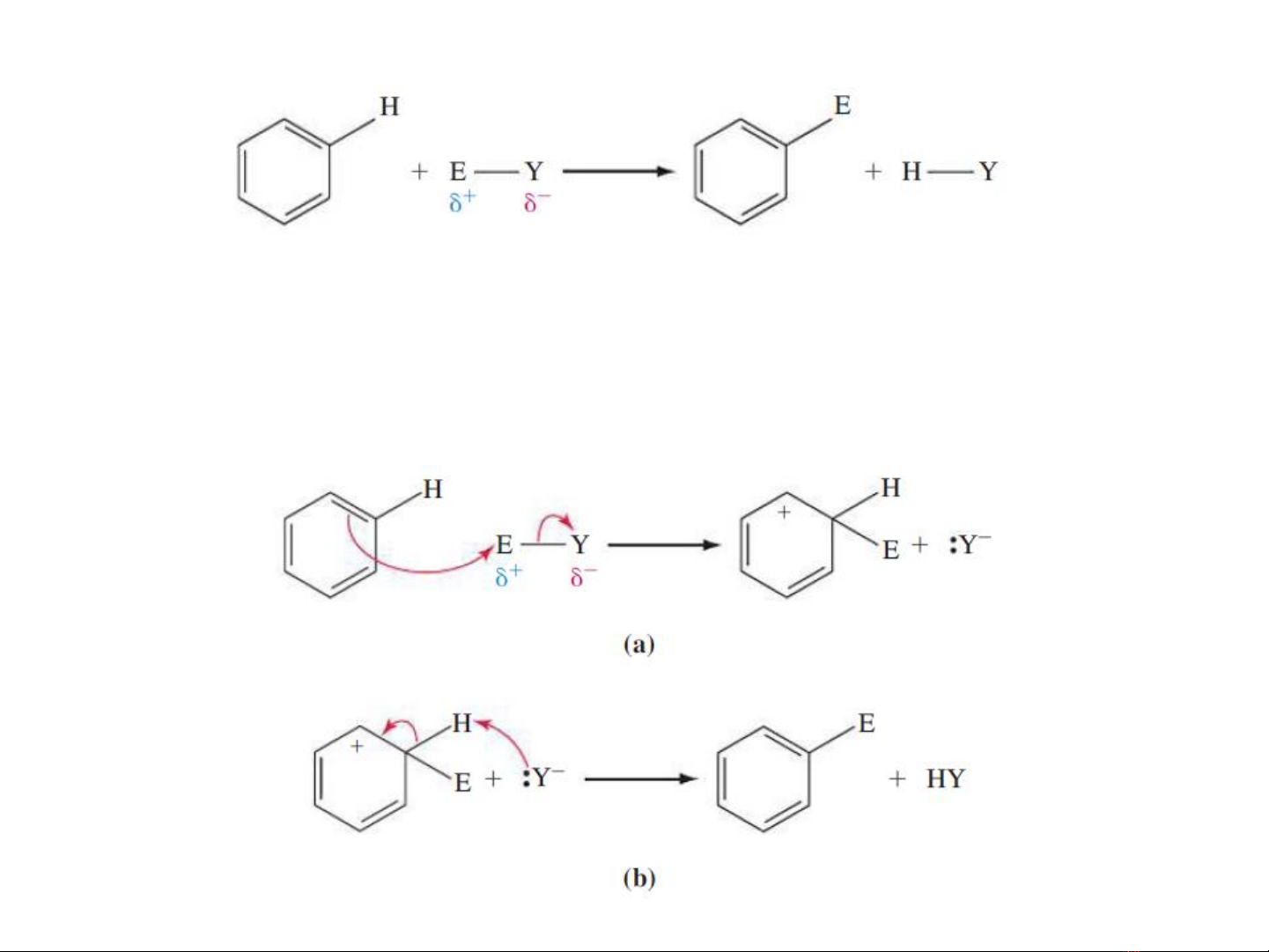 của vòng benzene để hình thành carbocation, C6H5E+ được