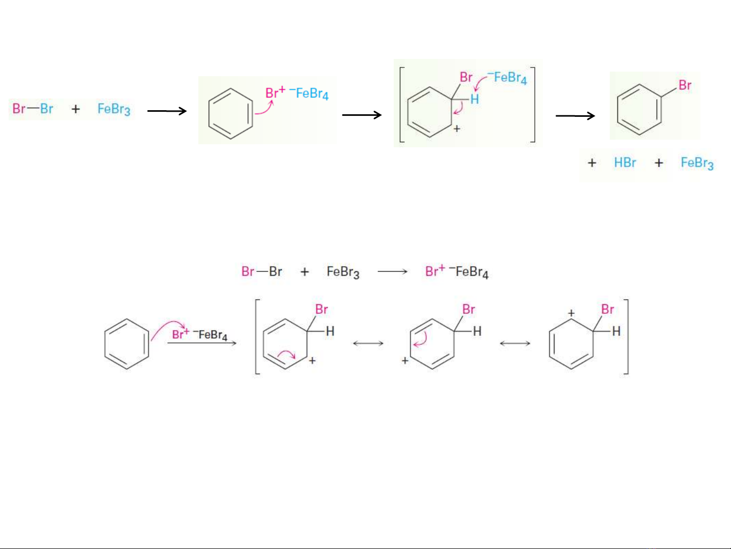 (1) Hệ thống điện tử của vòng benzene tác kích vào phức FeBr4-Br+ theo giai