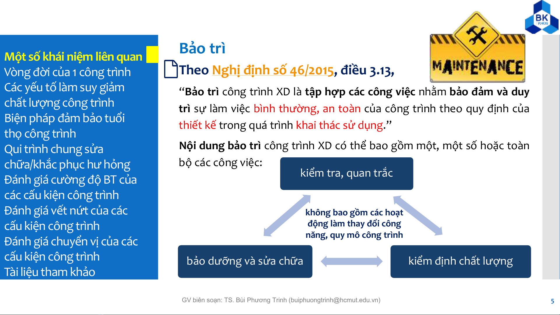 “Bảo trì công trình XD là tập hợp các công việc nhằm bảo đảm và duy