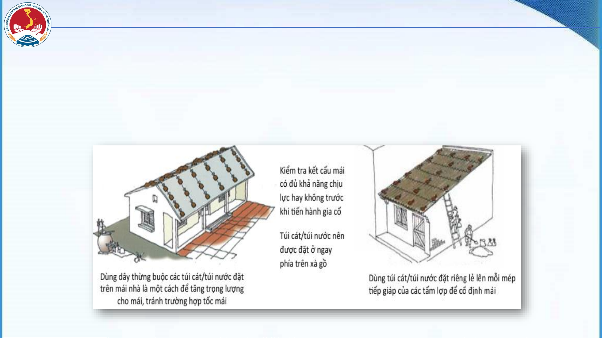 Đối với nhà có độ dốc mái lớn, dùng các bao cát đóng lỏng có trọng lượng từ 15 -20kg, nối với nhau