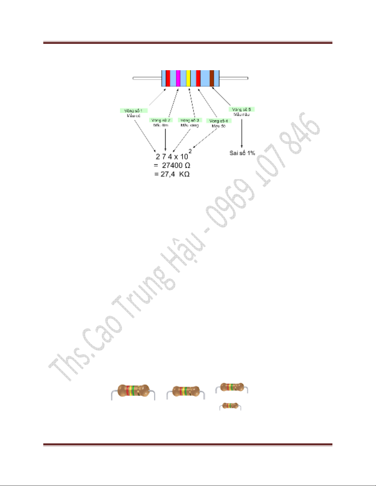 c. Cách đọc trị số điện trở 5 vòng màu : ( điện trở chính xác )