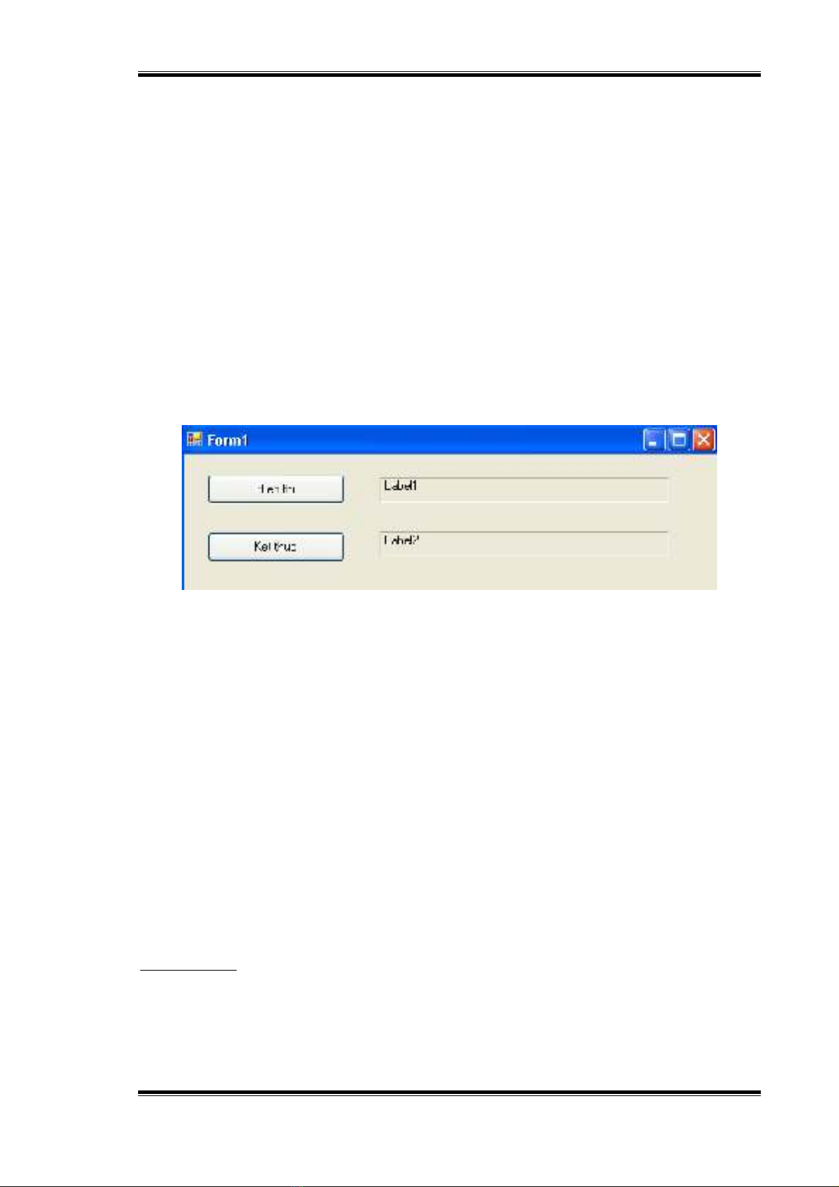 Nó gồm hai nút là Hien thi – Button1, Ket thuc – Button và hai nhãn Label1, Label2.